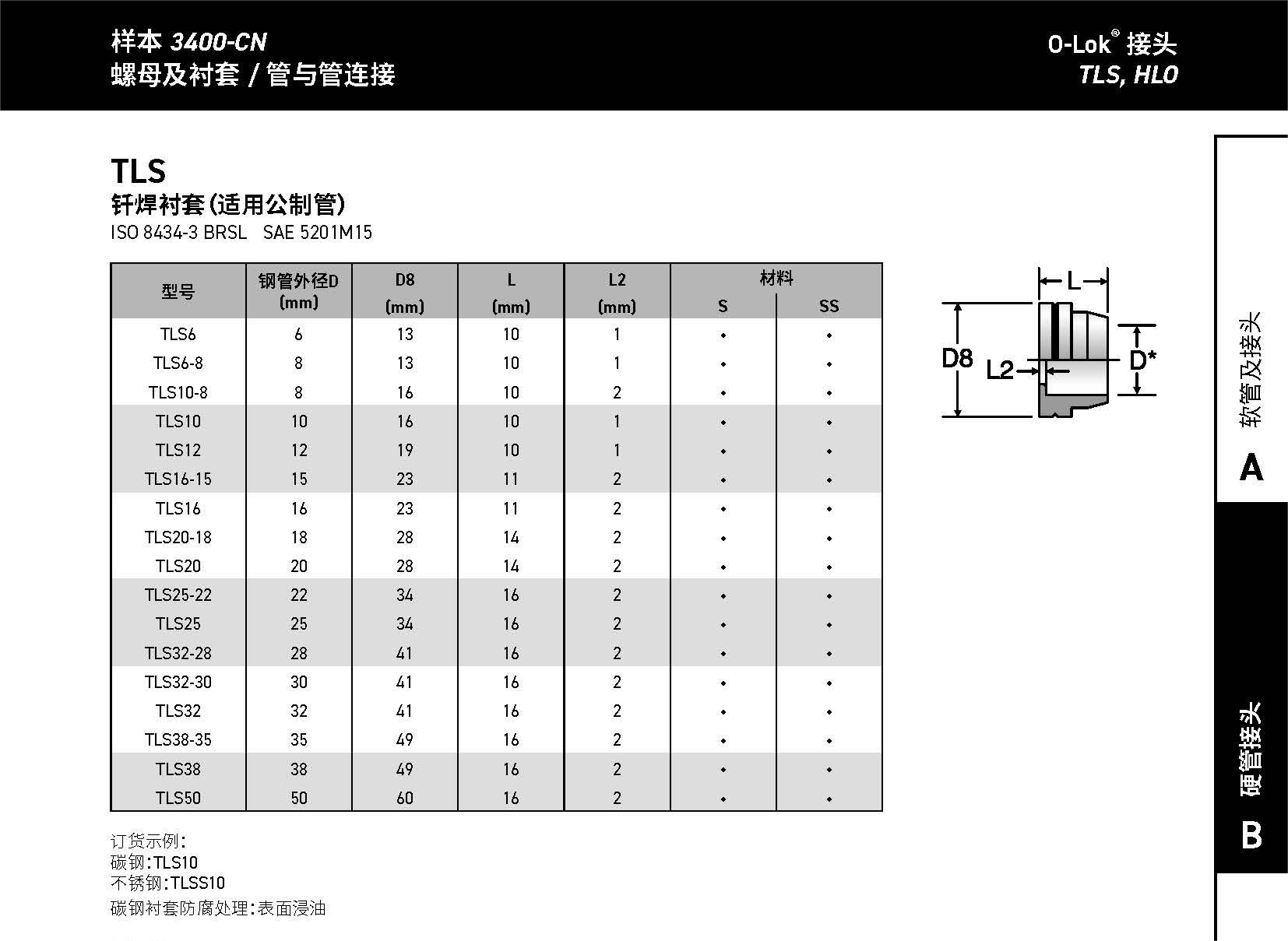 TLS 釬焊襯套(適用公制管) ISO 8434-3 BRSL SAE 5201M15