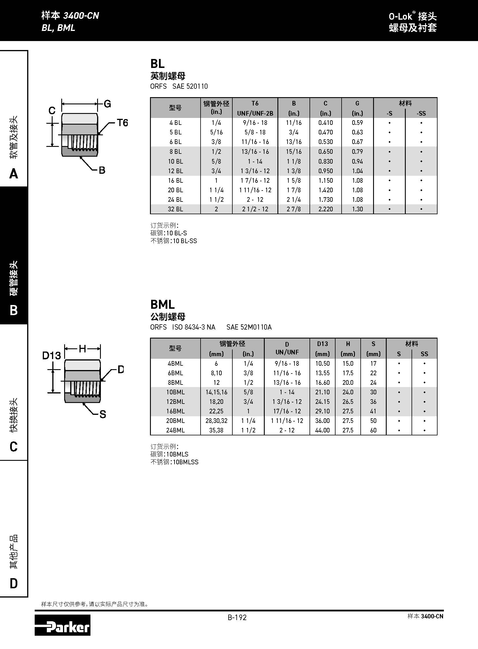 BML 公制螺母 ORFS ISO 8434-3 NA SAE 52M0110A