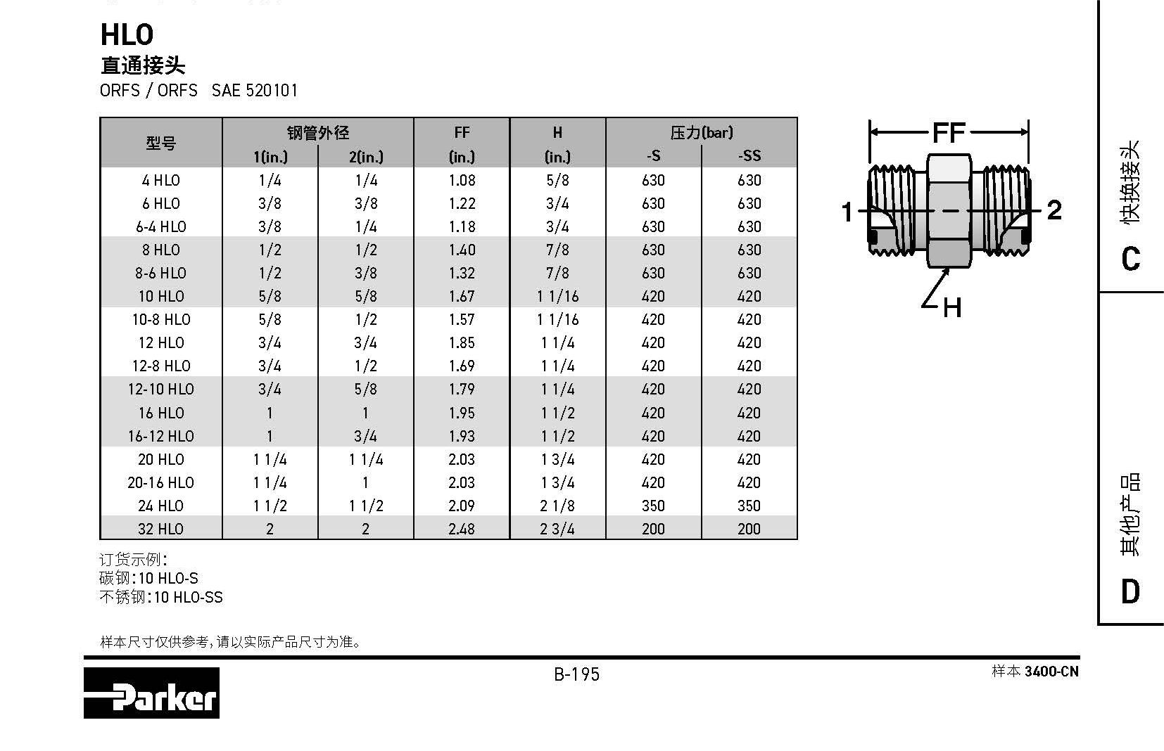 HLO 直通接頭 ORFS / ORFS SAE 520101