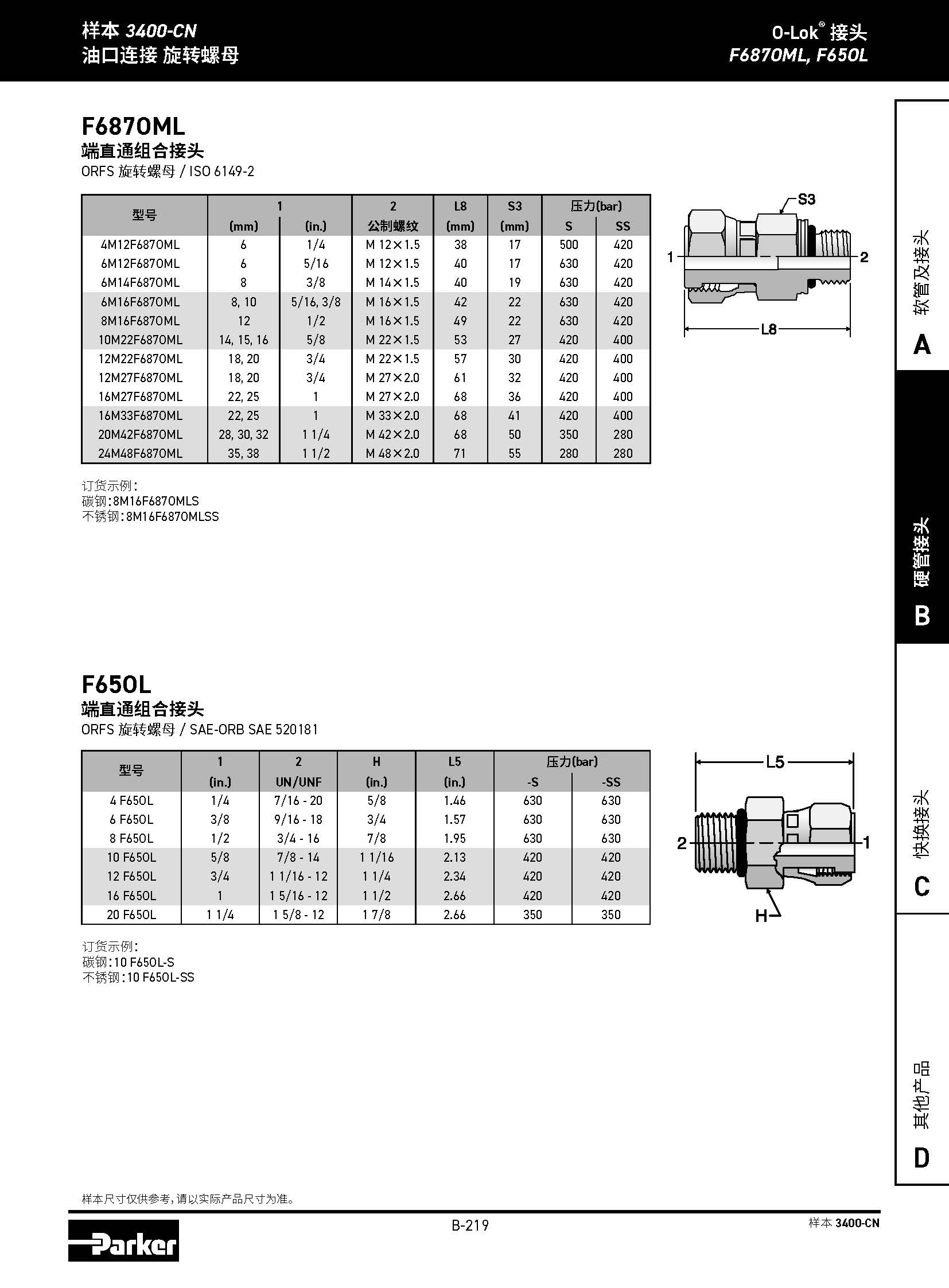 F687OML 端直通組合接頭 ORFS 旋轉螺母 / ISO 6149-2