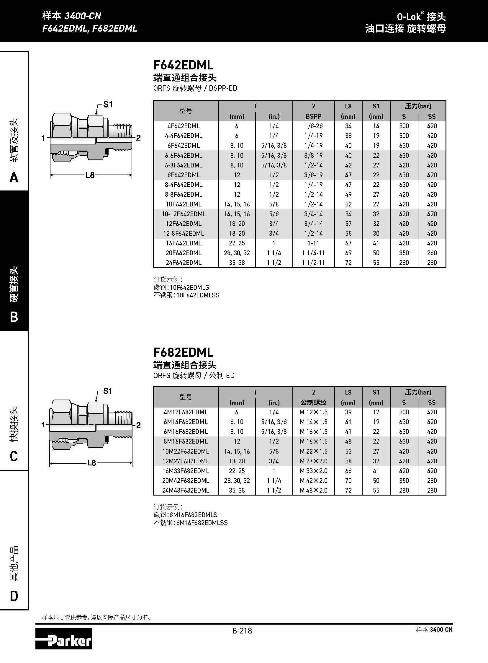 F642EDML 端直通組合接頭 ORFS 旋轉螺母 / BSPP-ED
