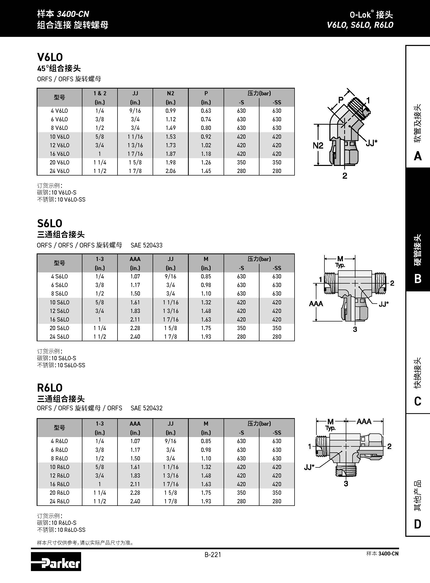 S6LO 三通組合接頭 ORFS / ORFS / ORFS 旋轉(zhuǎn)螺母 SAE 520433