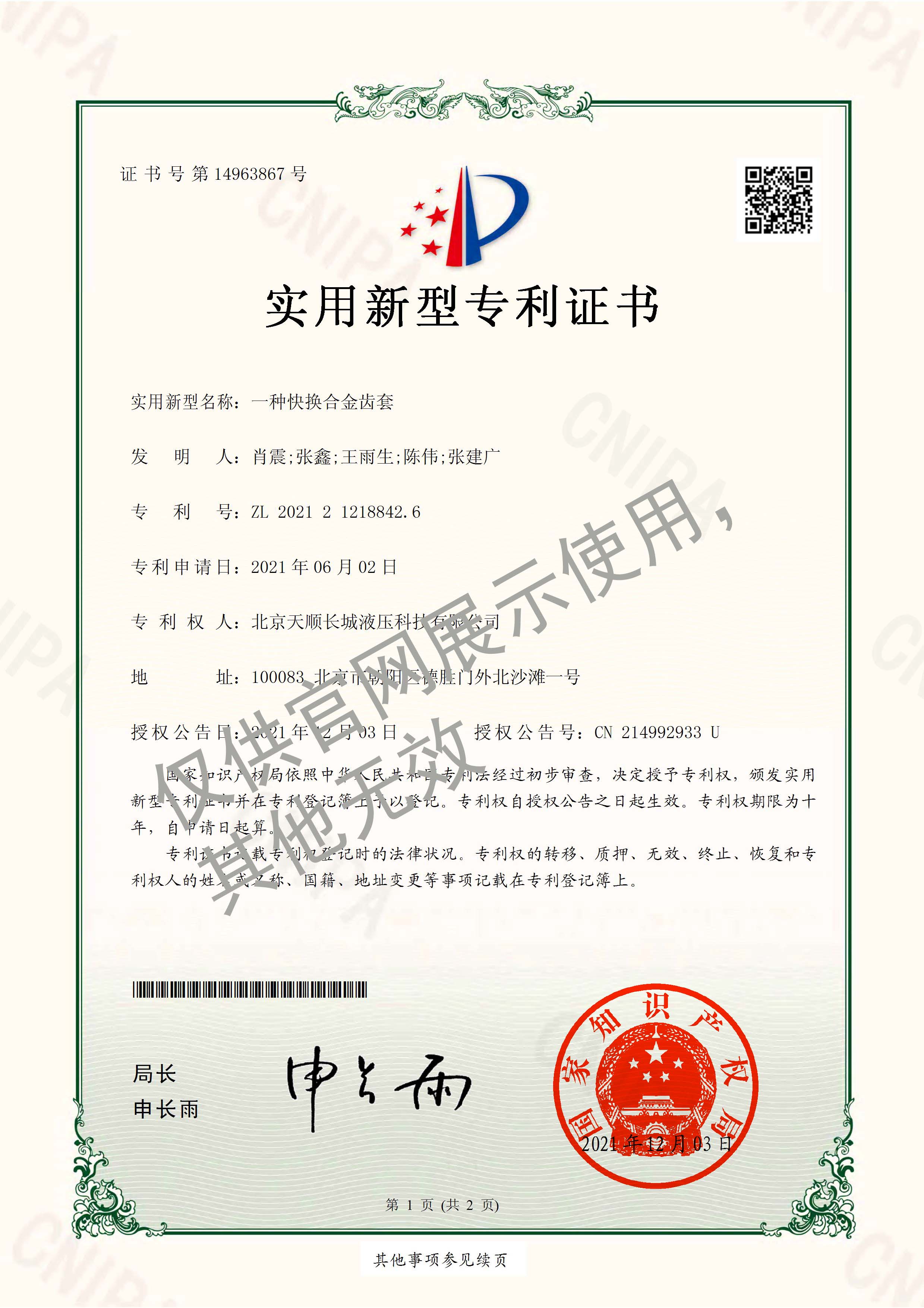 54-ZL202121218842.6實用新型專利-一種快換合金齒套2021.06.02