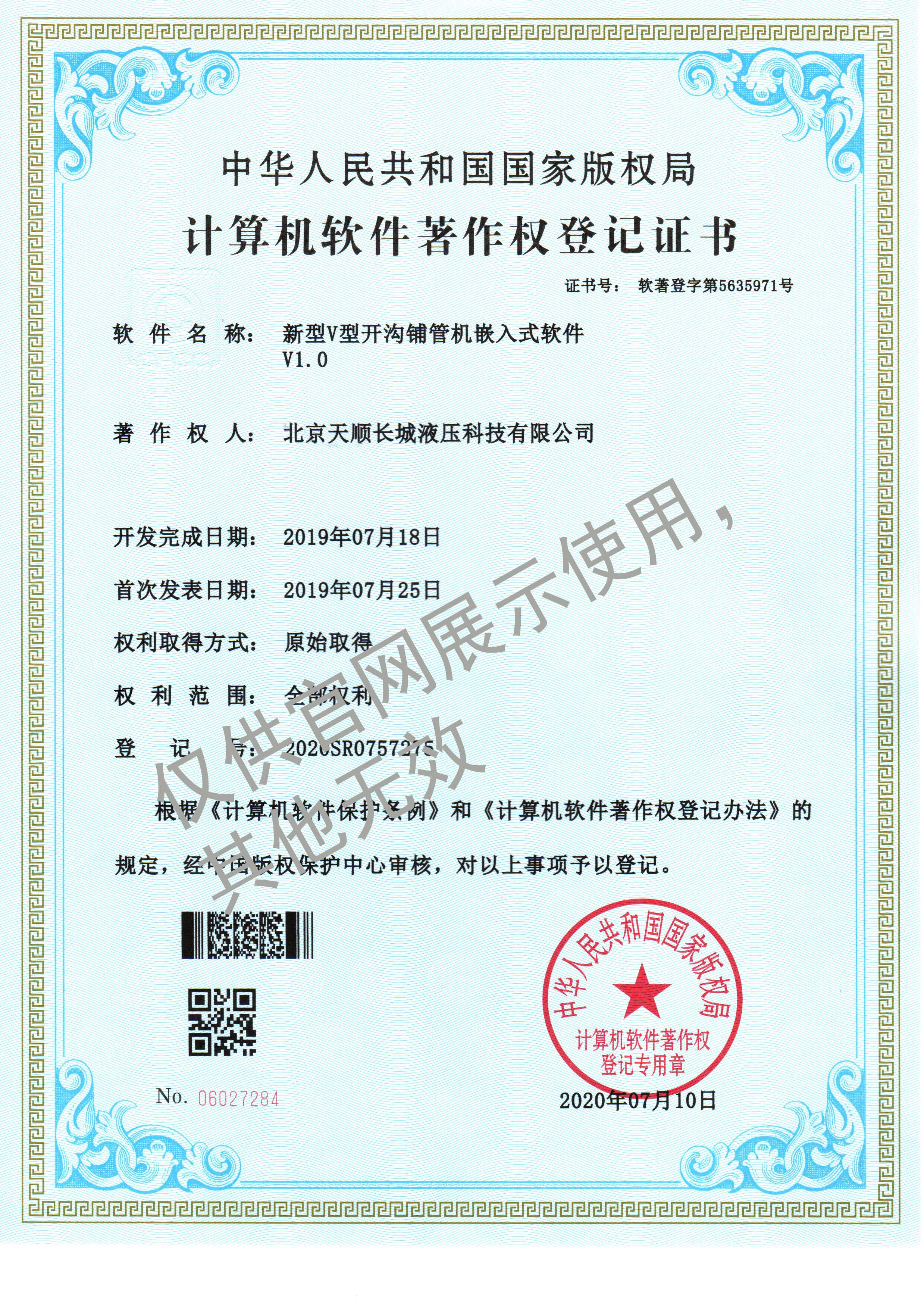 39-2020SR0757275計(jì)算機(jī)軟著-新型V型開(kāi)溝鋪管機(jī)嵌入式軟件V1.0