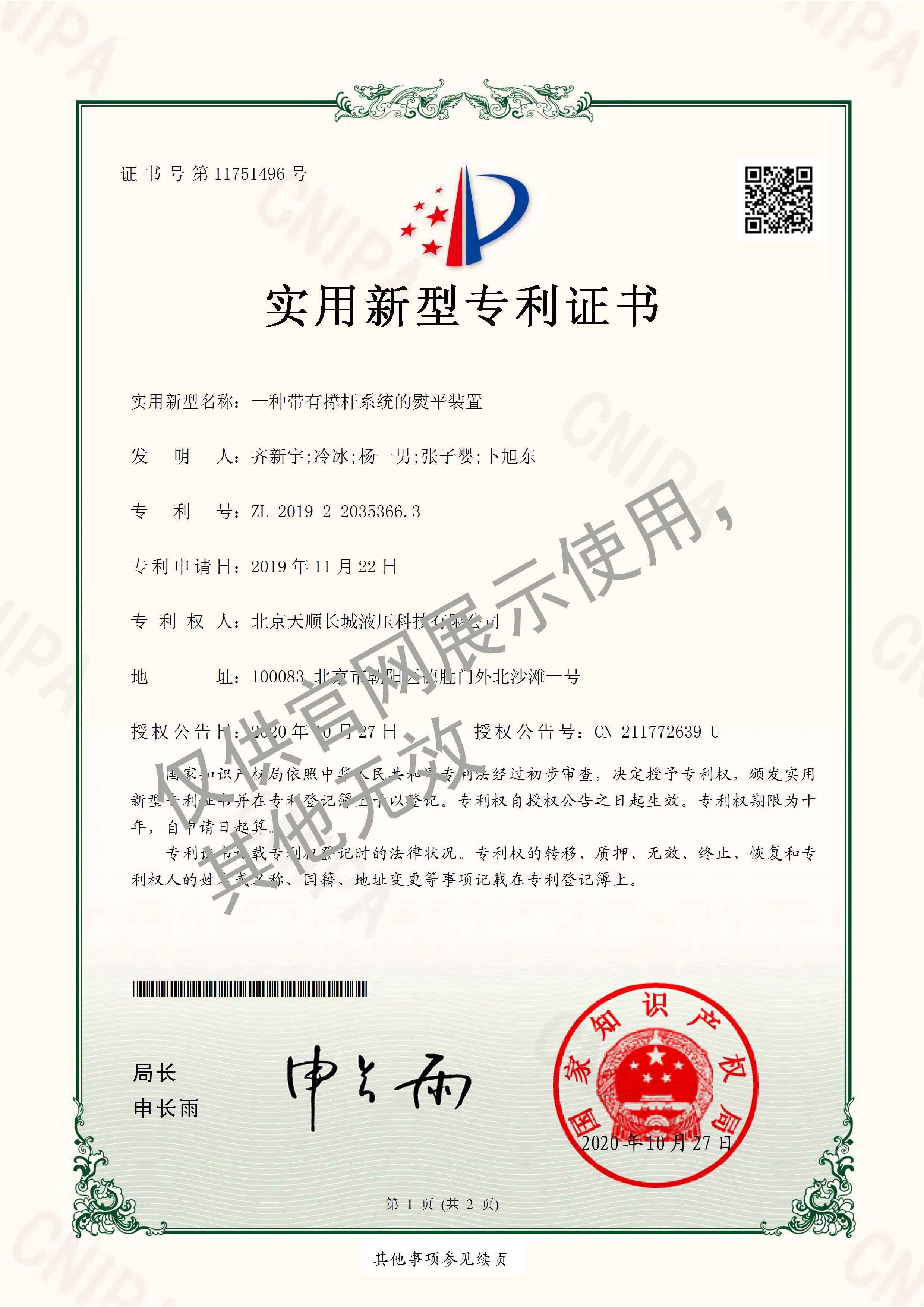 41-ZL201922035366.3實(shí)用新型專利-一種帶有撐桿系統(tǒng)的熨平裝置2019.11.22