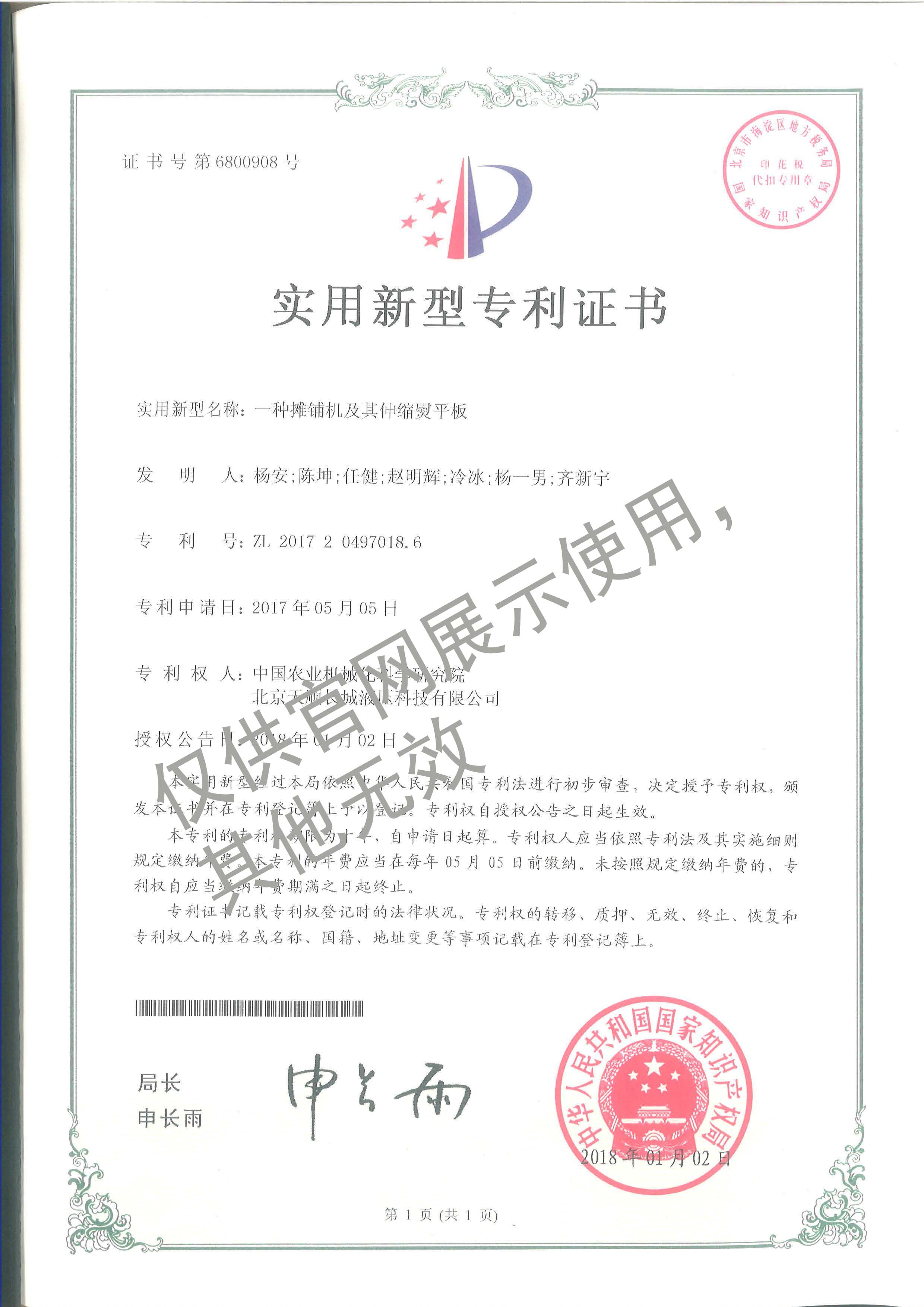 22-ZL201720497018.6實用新型專利-一種攤鋪機(jī)及其伸縮熨平板20170505