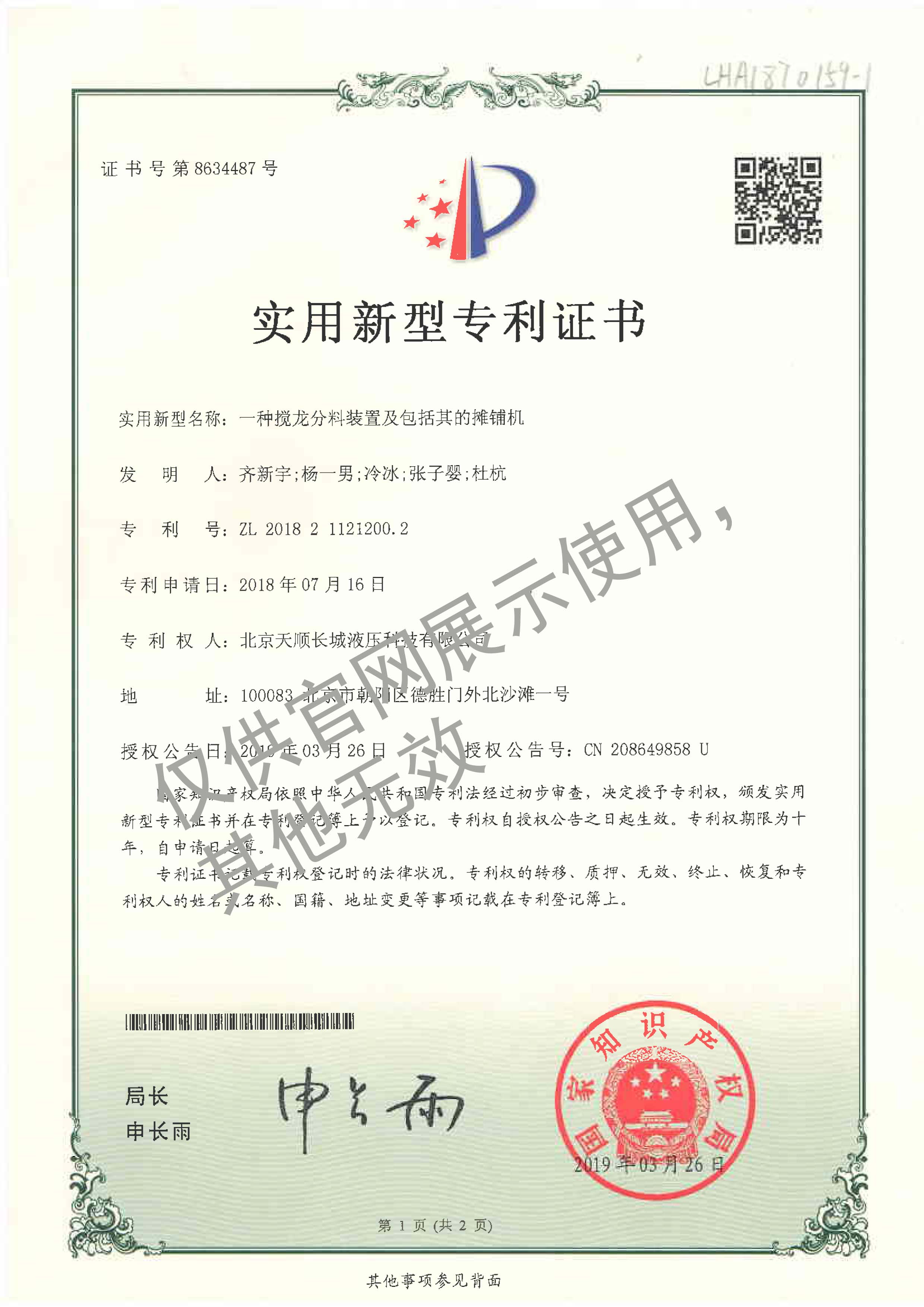 27-ZL201821121200.2實用新型專利-一種攪龍分料裝置及包括其的攤鋪機(jī)20180716