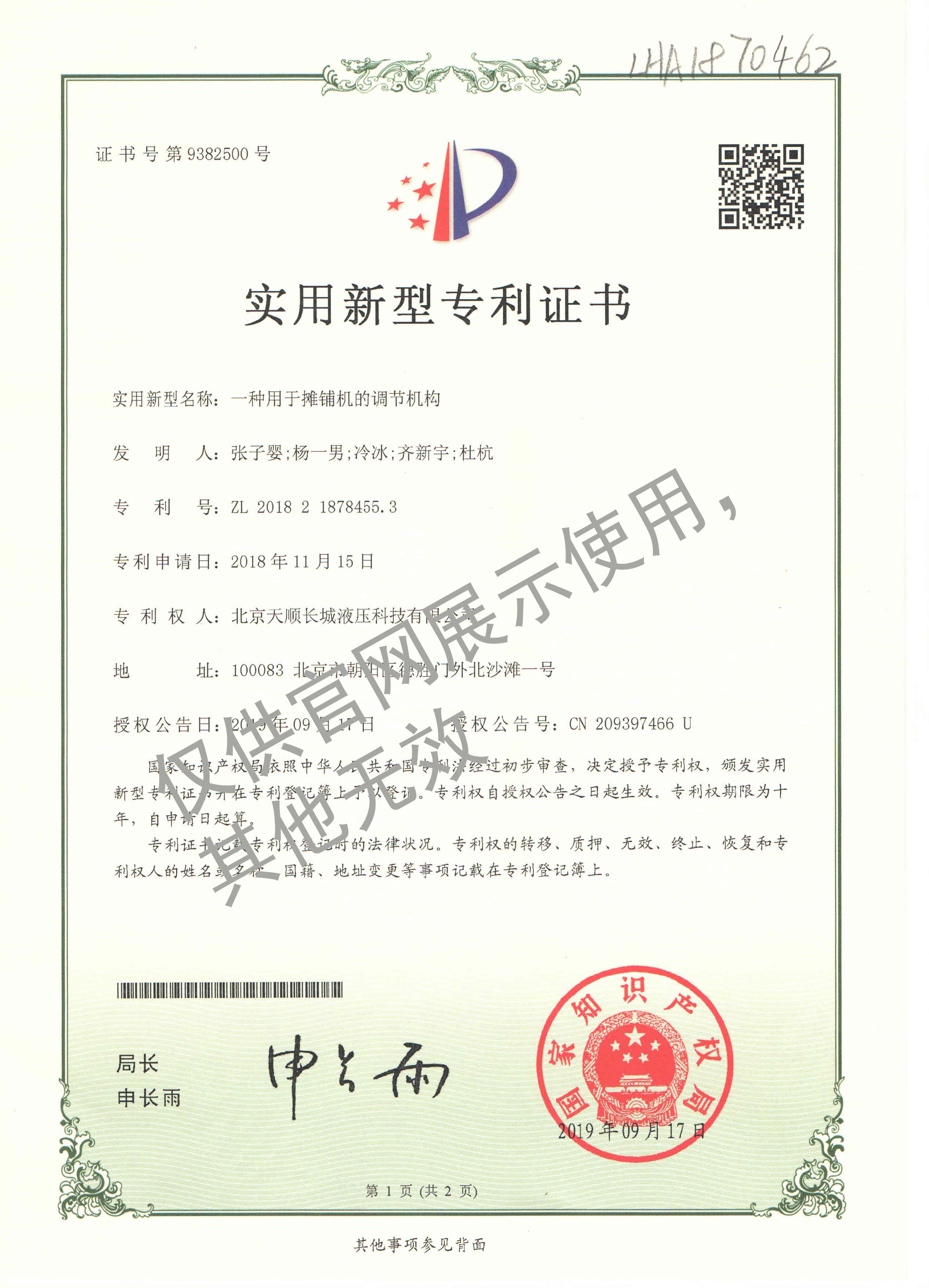 30-ZL201821878455.3實用新型專利-一種用于攤鋪機(jī)的調(diào)節(jié)機(jī)構(gòu)20181115