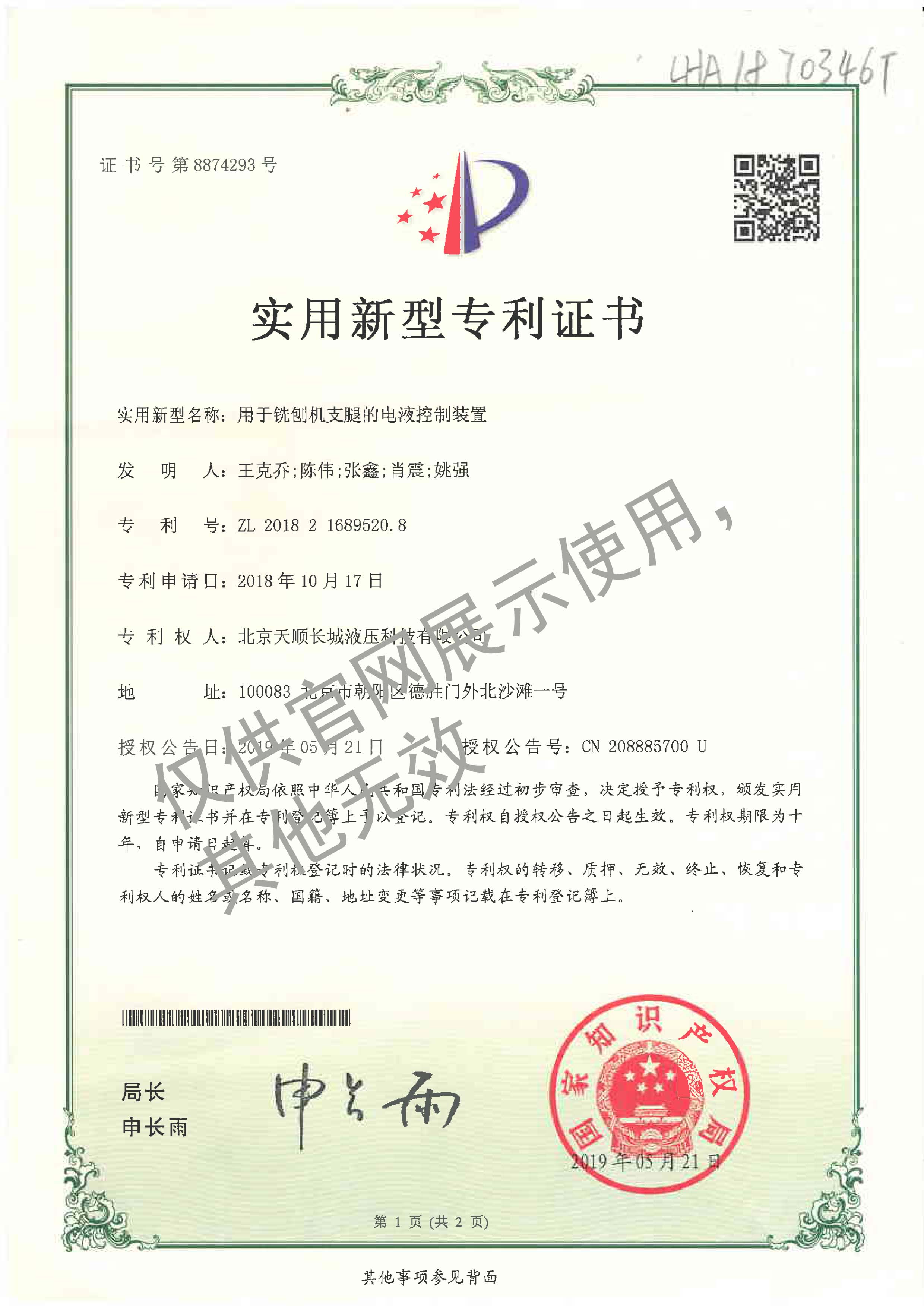 28-ZL201821689520.8實用新型專利-用于銑創(chuàng)機(jī)支腿的電液控制裝置20181017