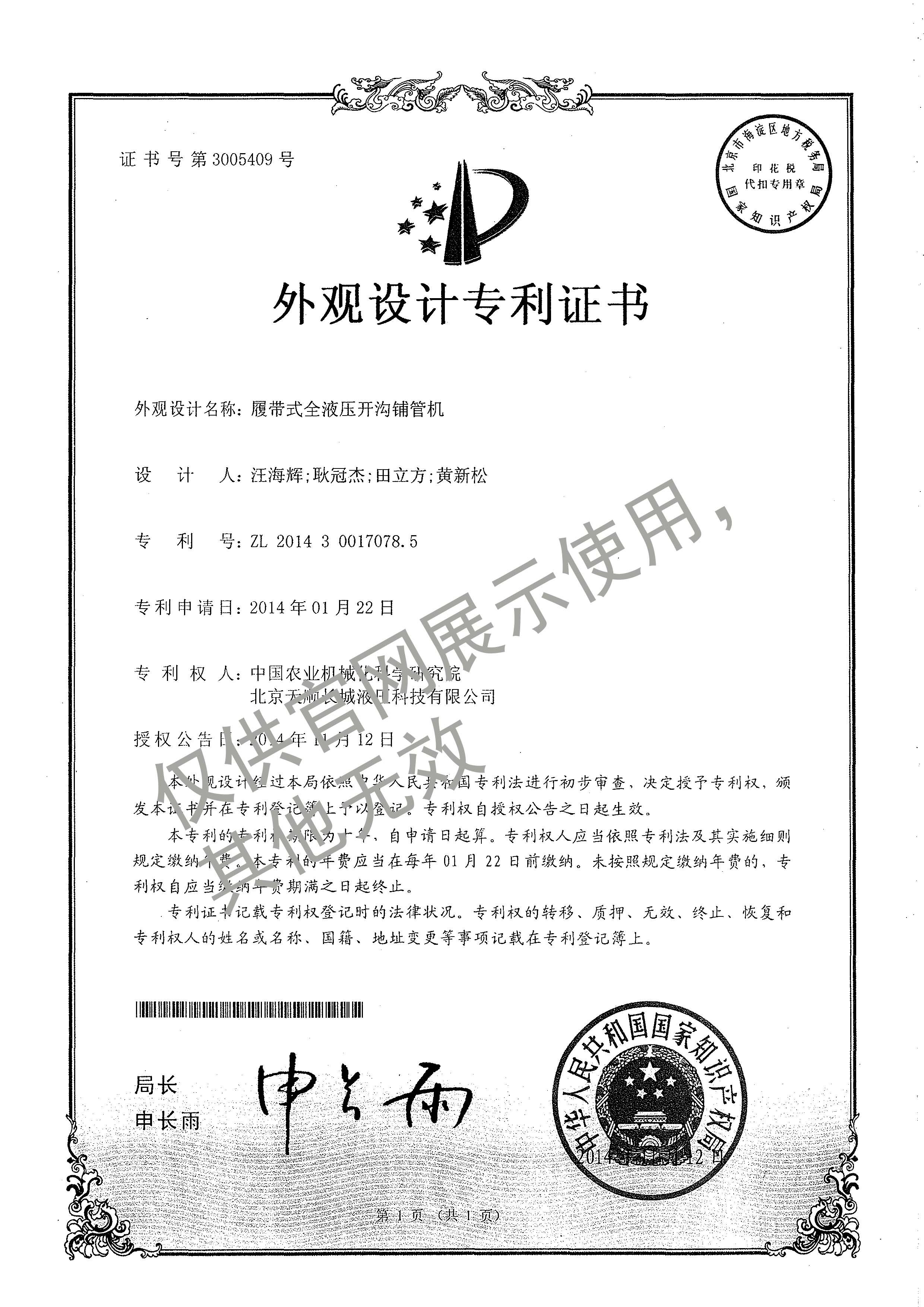 13-ZL201430017078.5外觀設計專利-履帶式全液壓開溝鋪管機