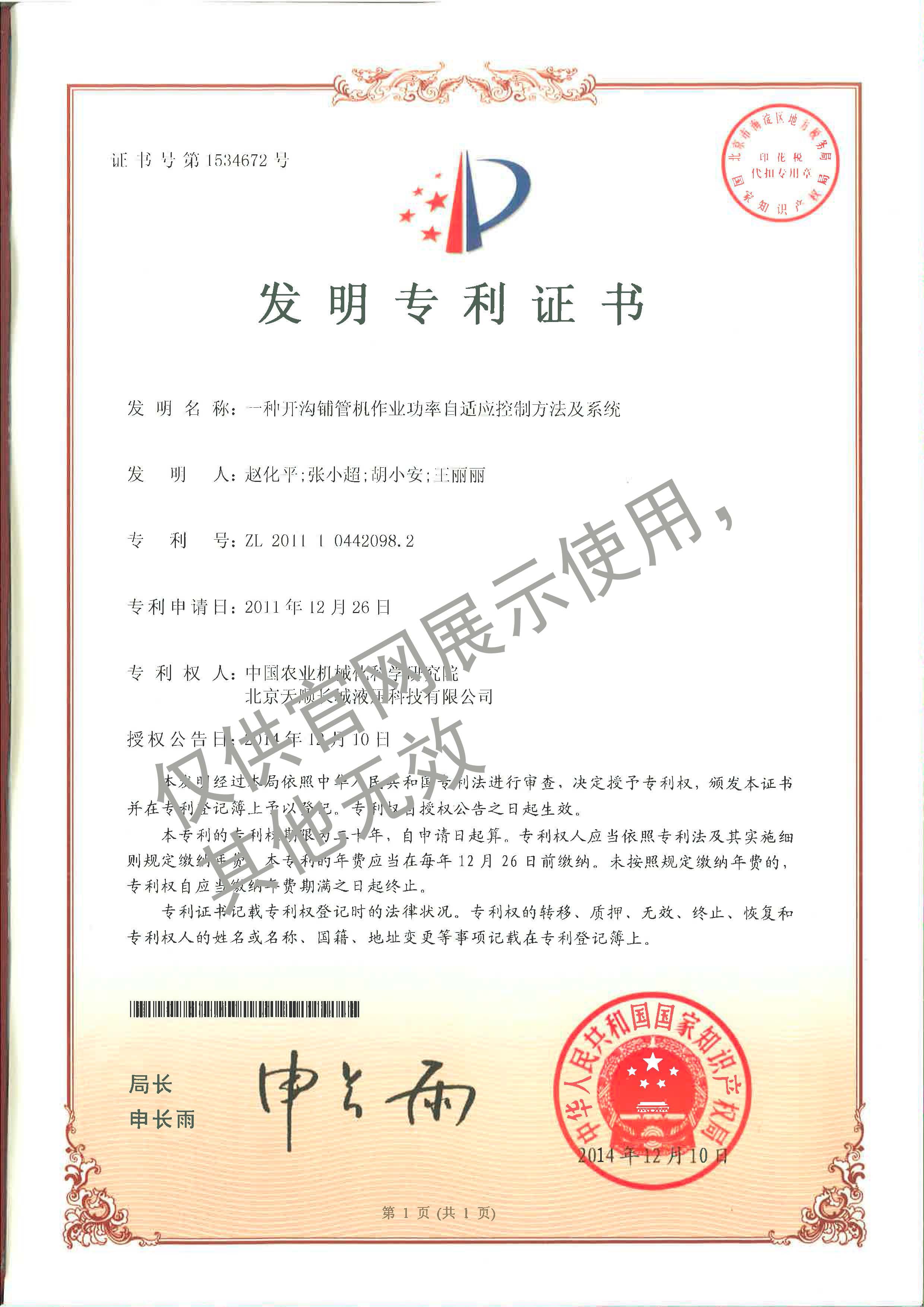 10-ZL201110442406.1發(fā)明專利-一種開溝鋪管機作業(yè)功率自適應控制方法及系統(tǒng)20111226