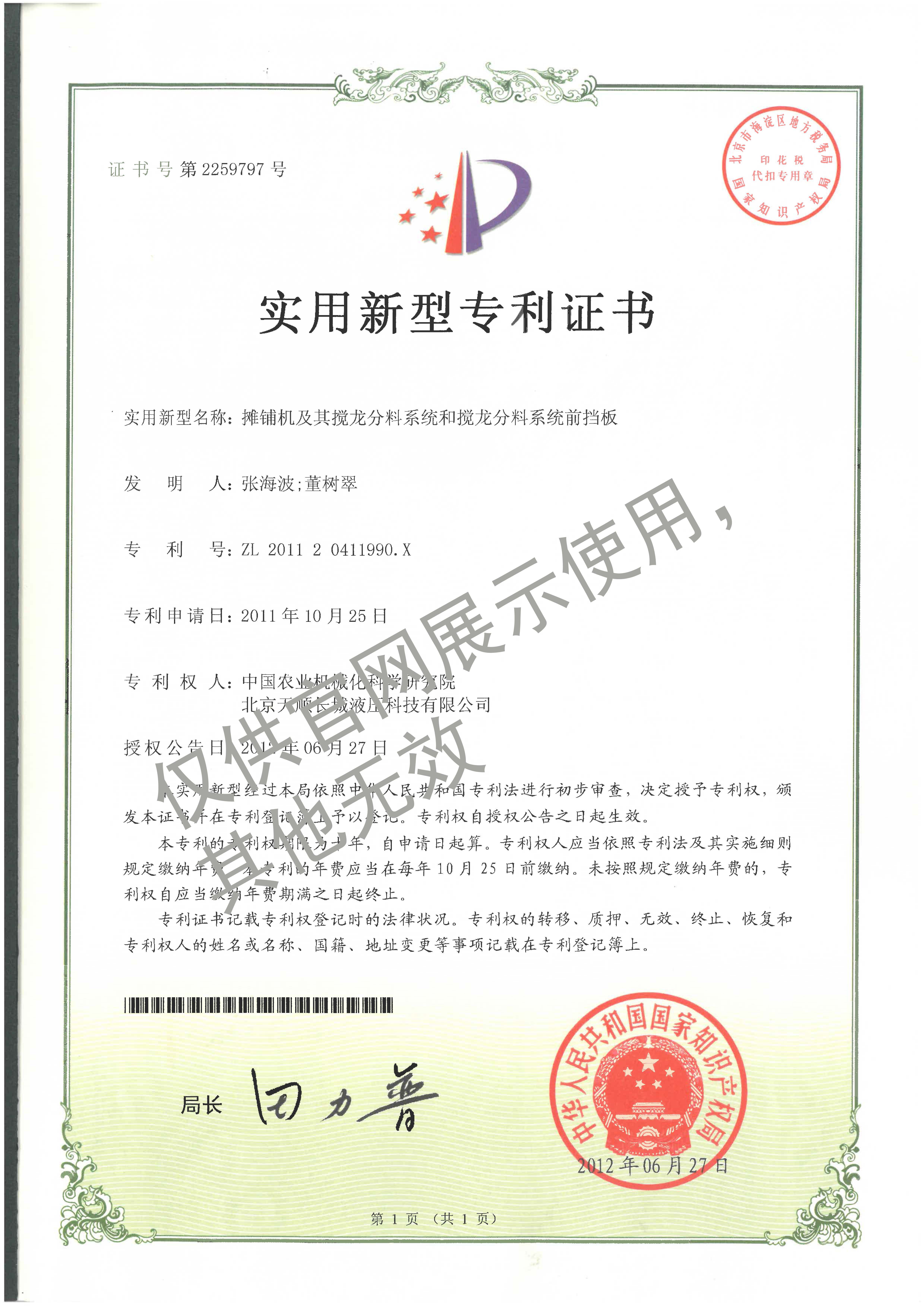 08-ZL201120411990.X實用新型專利-攤鋪機及其攪龍粉料系統(tǒng)前擋板20111025
