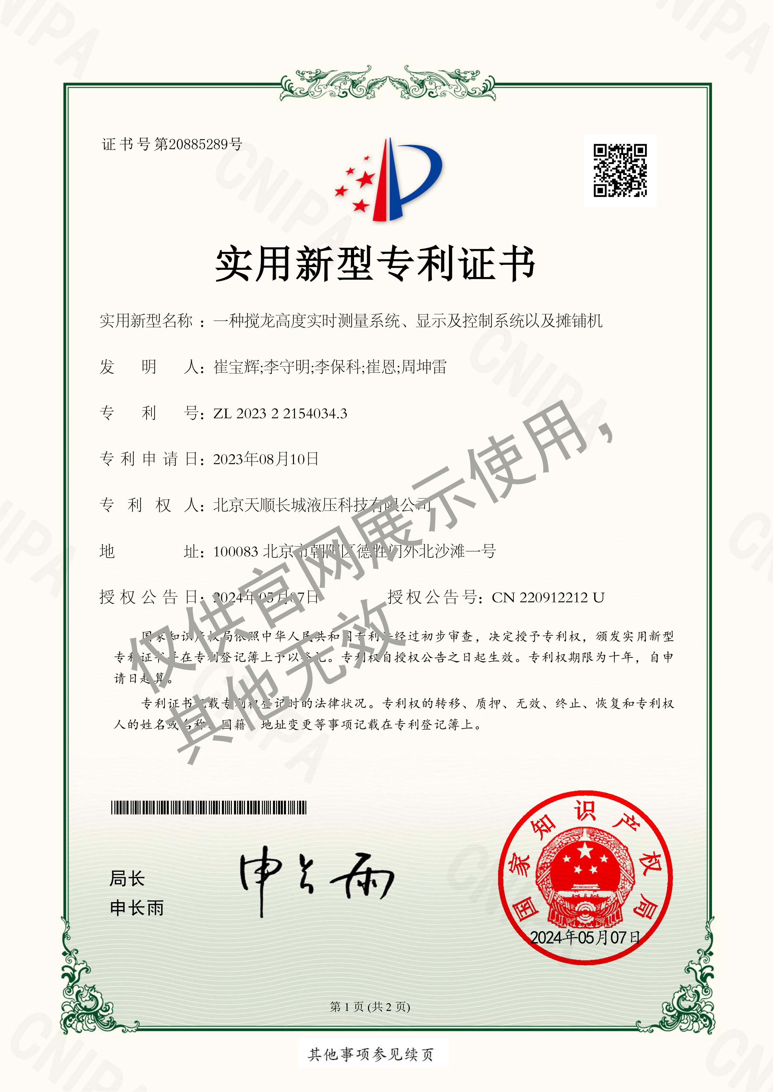 100-ZL202322154034.3-實(shí)用新型-一種攪龍高度實(shí)時(shí)測(cè)量系統(tǒng)、顯示及控制系統(tǒng)以及攤鋪機(jī)