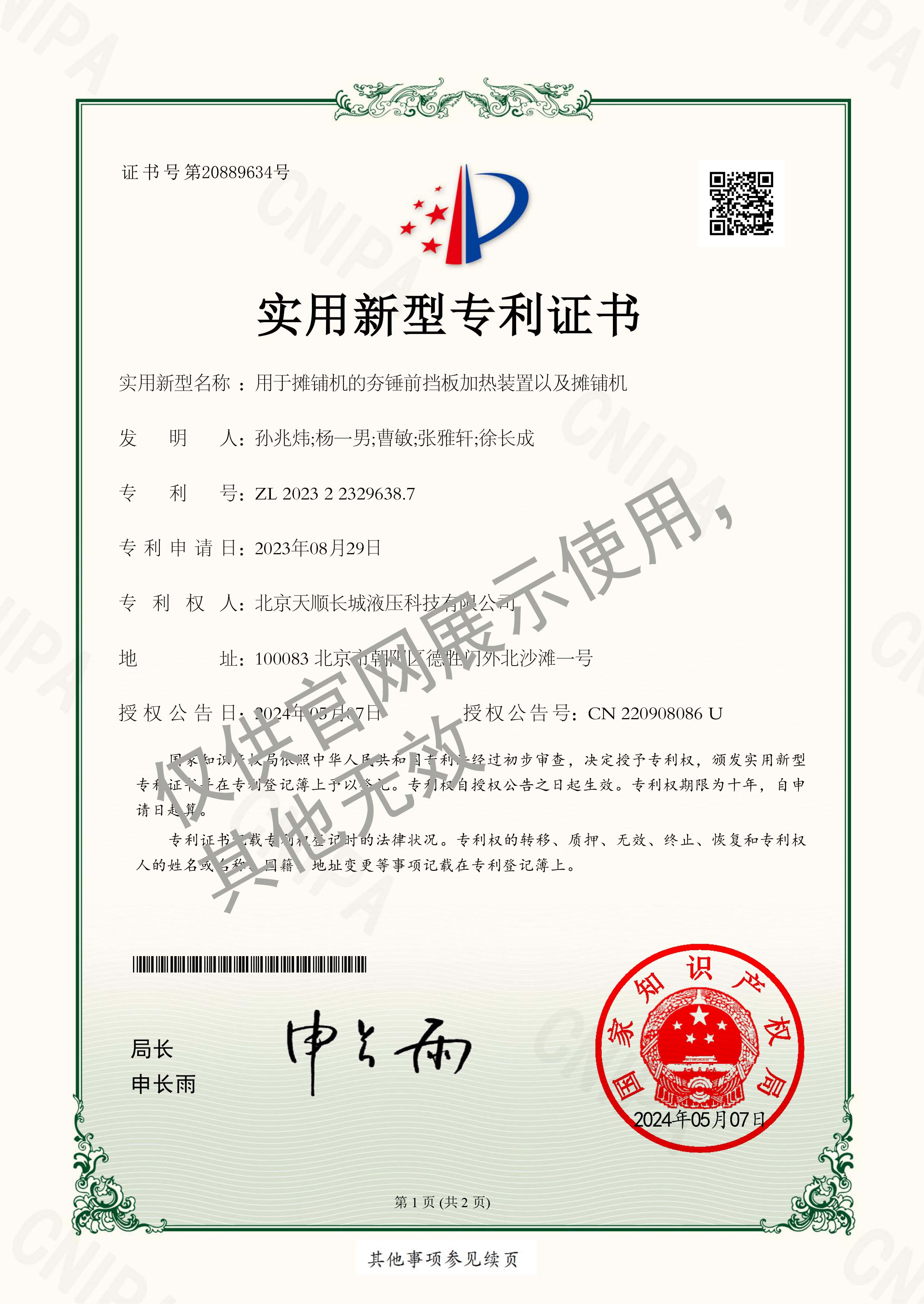 99-ZL202322329638.7-實(shí)用新型-用于攤鋪機(jī)的夯錘前擋板加熱裝置以及攤鋪機(jī)
