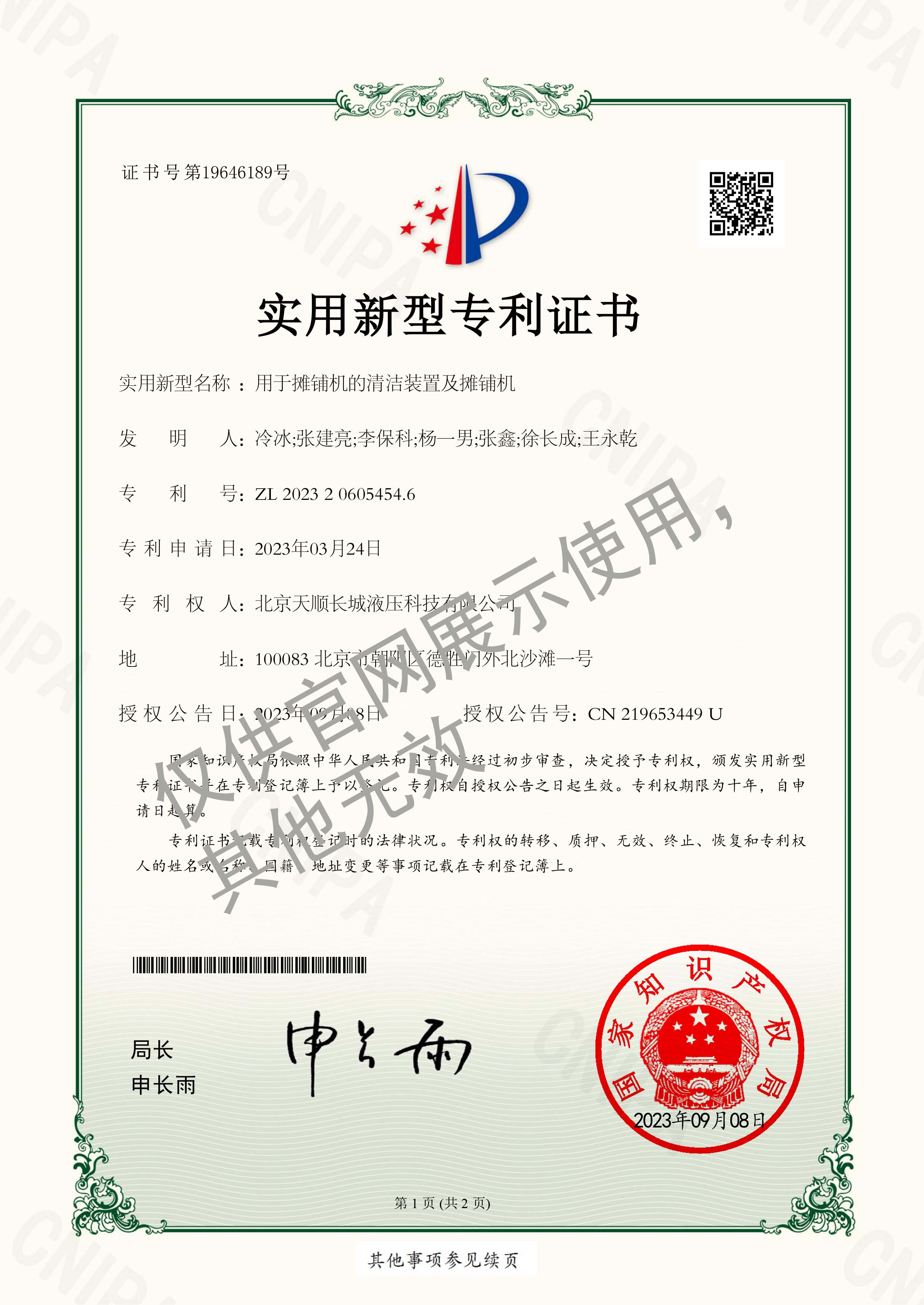 90-ZL202320605454.6-用于攤鋪機(jī)的清潔裝置及攤鋪機(jī)