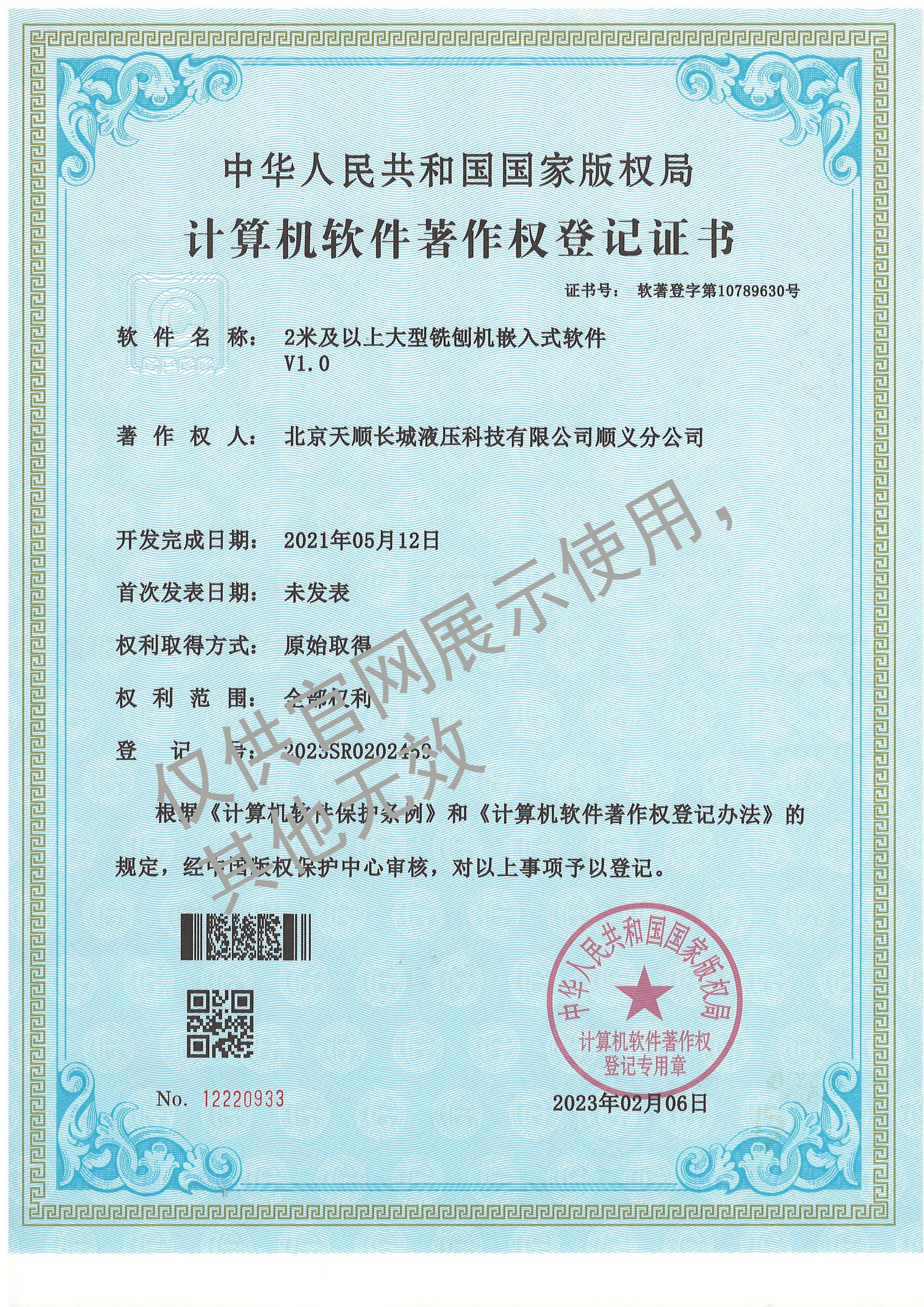 89-2023SR0202459-計(jì)算機(jī)軟件著作-2米及以上大型銑刨機(jī)嵌入式軟件V1.0