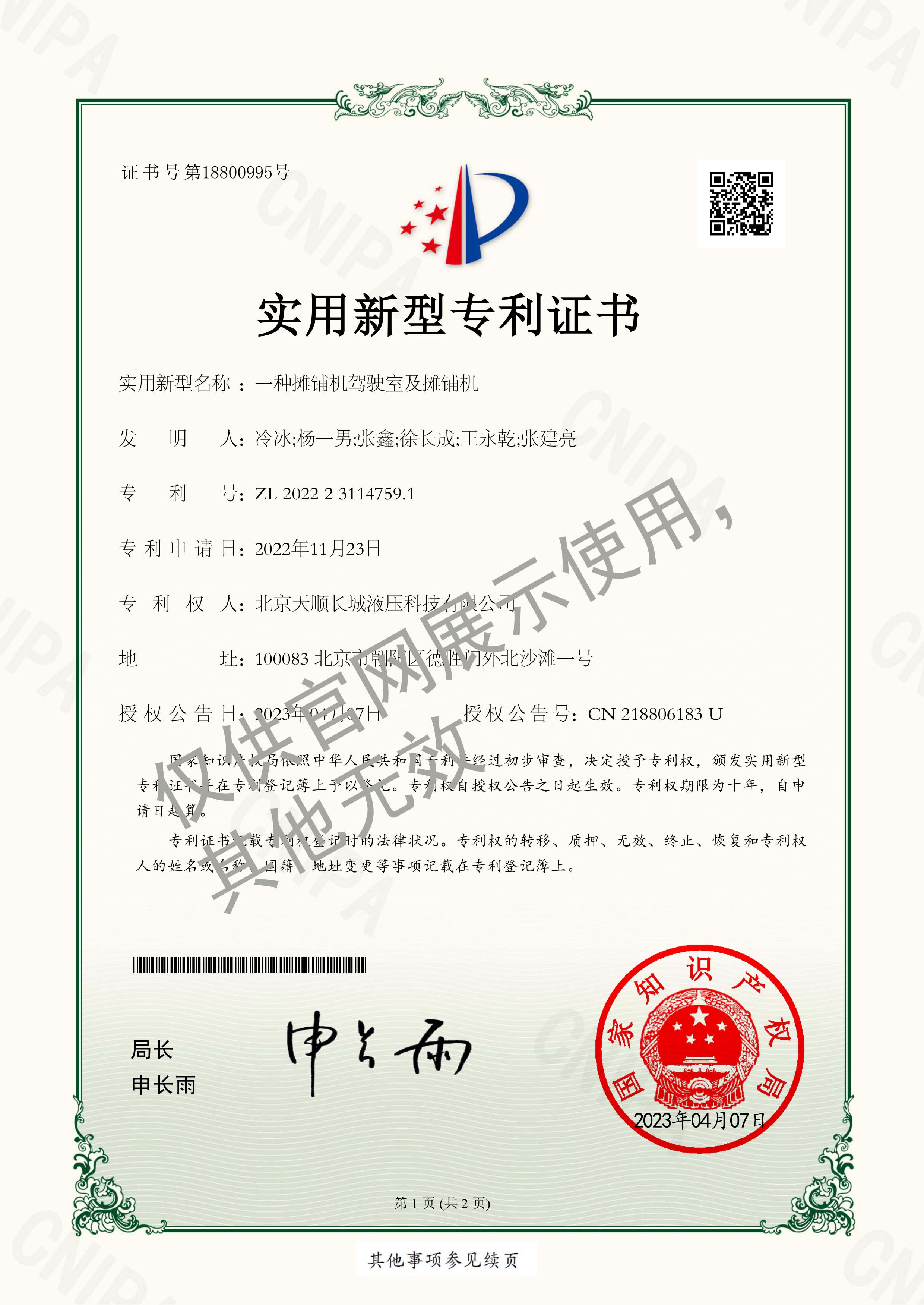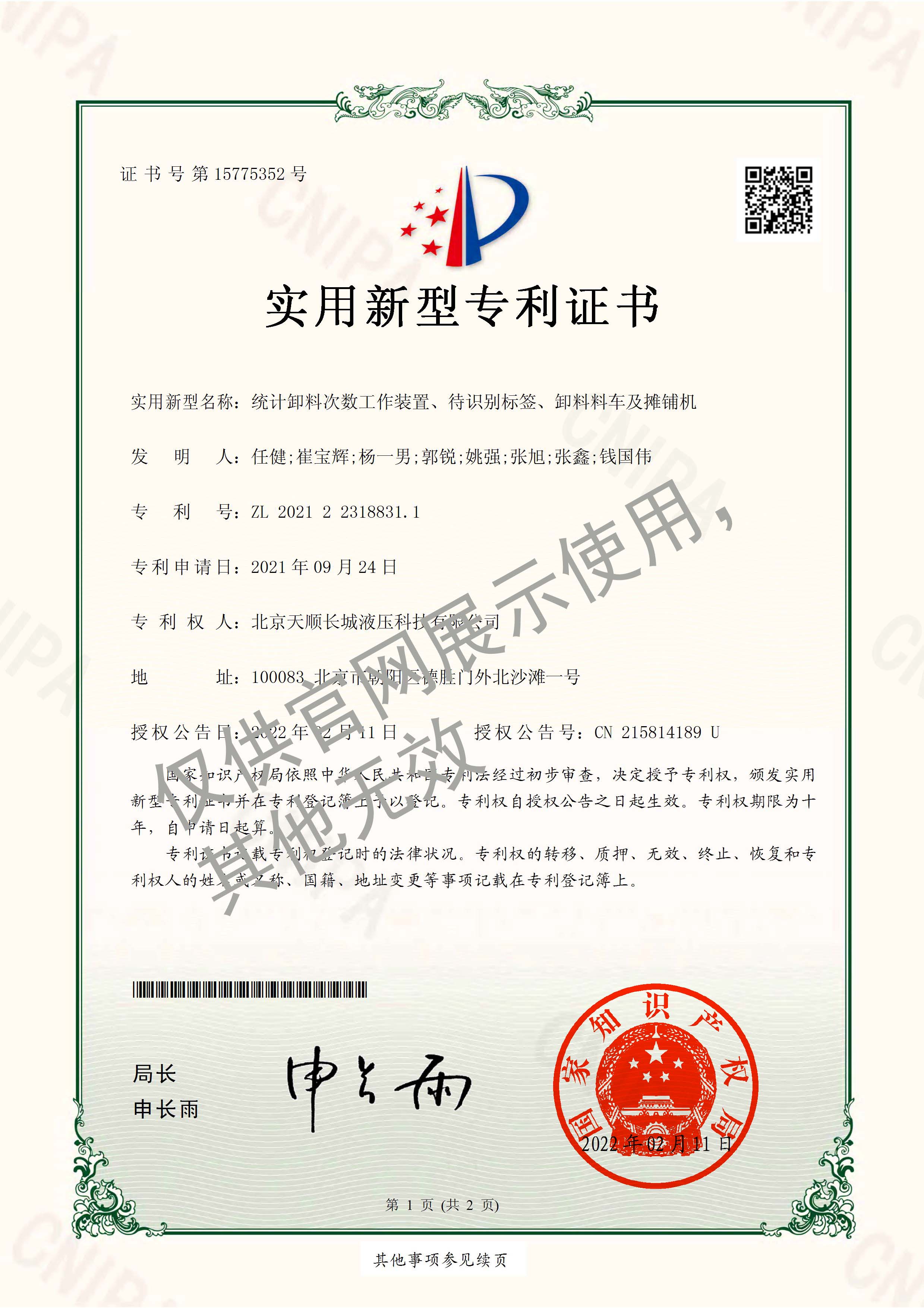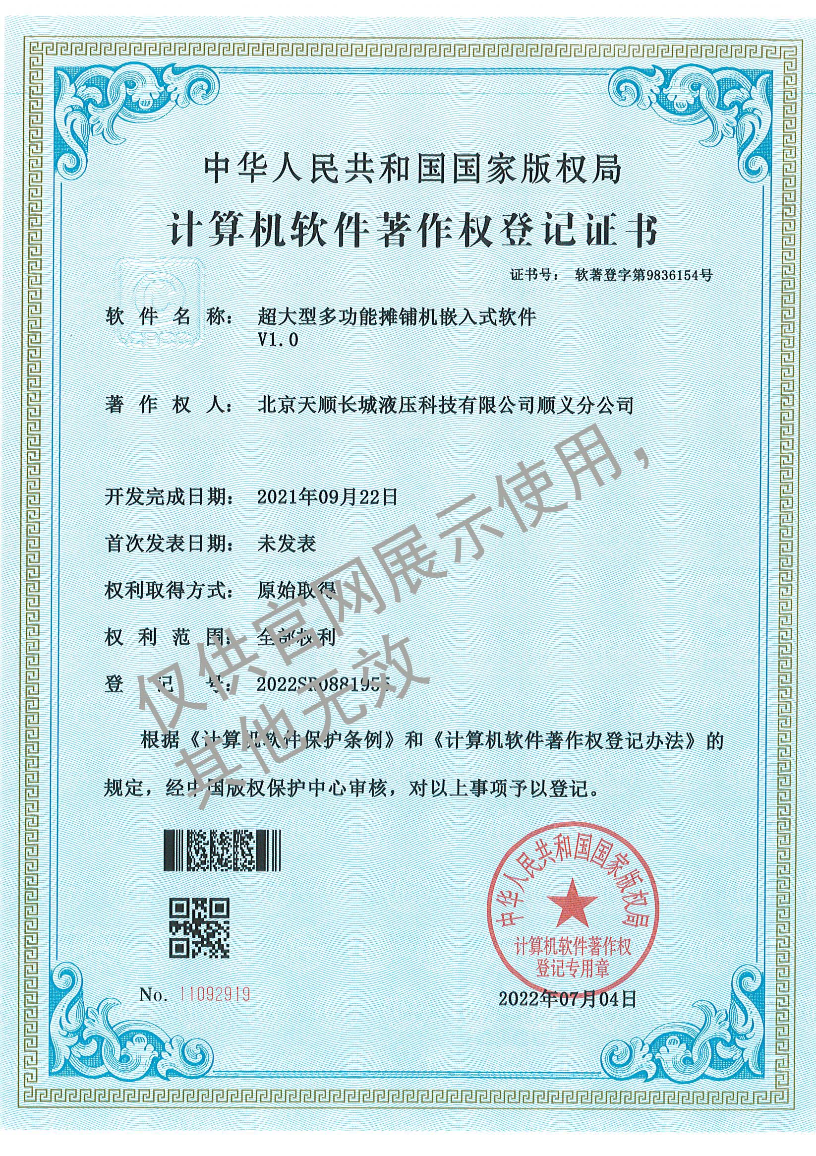 79-2022SR0881955-軟著-超大型多功能攤鋪機(jī)嵌入式軟件V1.0