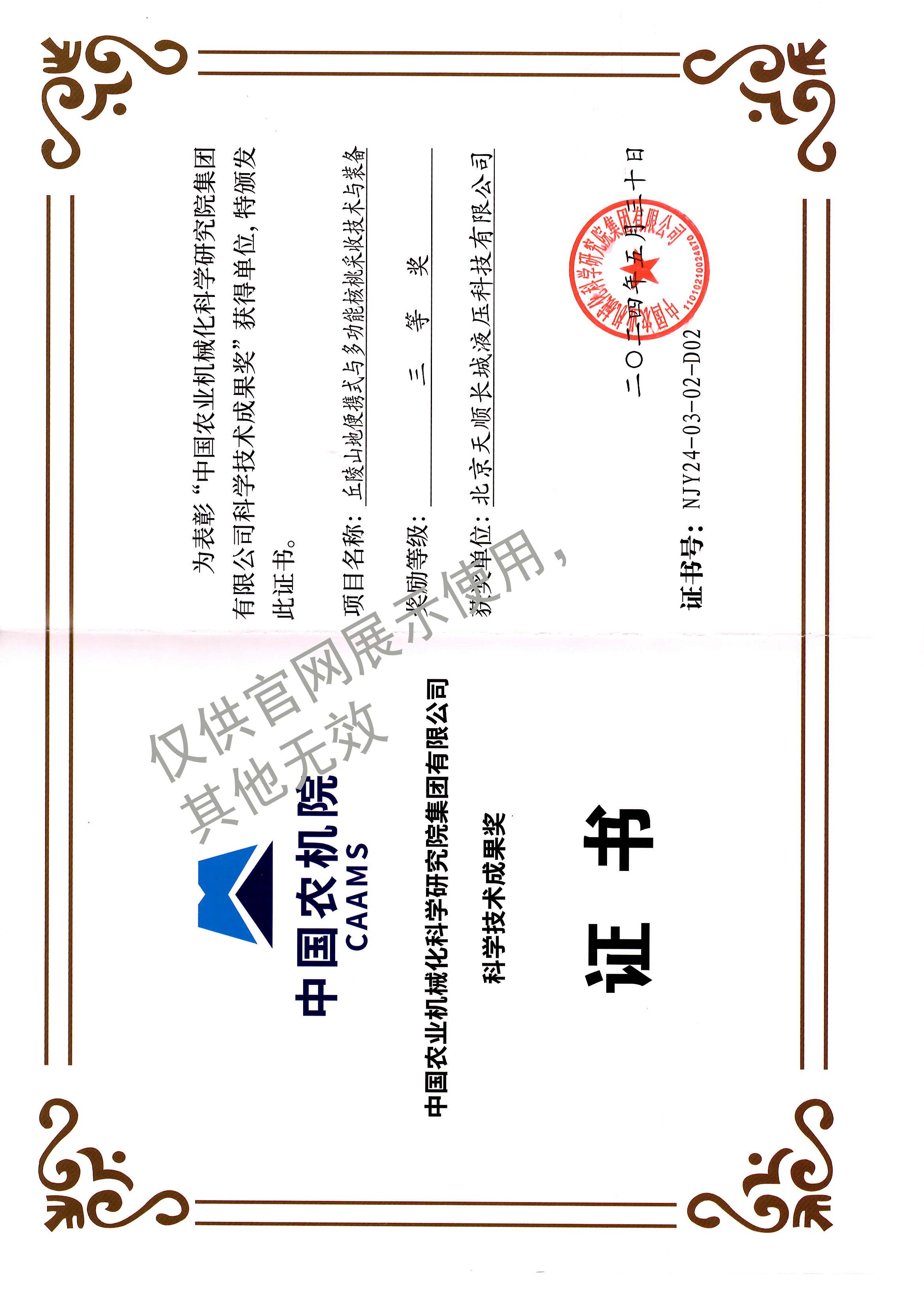 中國(guó)農(nóng)機(jī)院科學(xué)技術(shù)成果獎(jiǎng)三等獎(jiǎng)-丘陵山地便攜式與多功能核桃采收技術(shù)與裝備2024.05.30