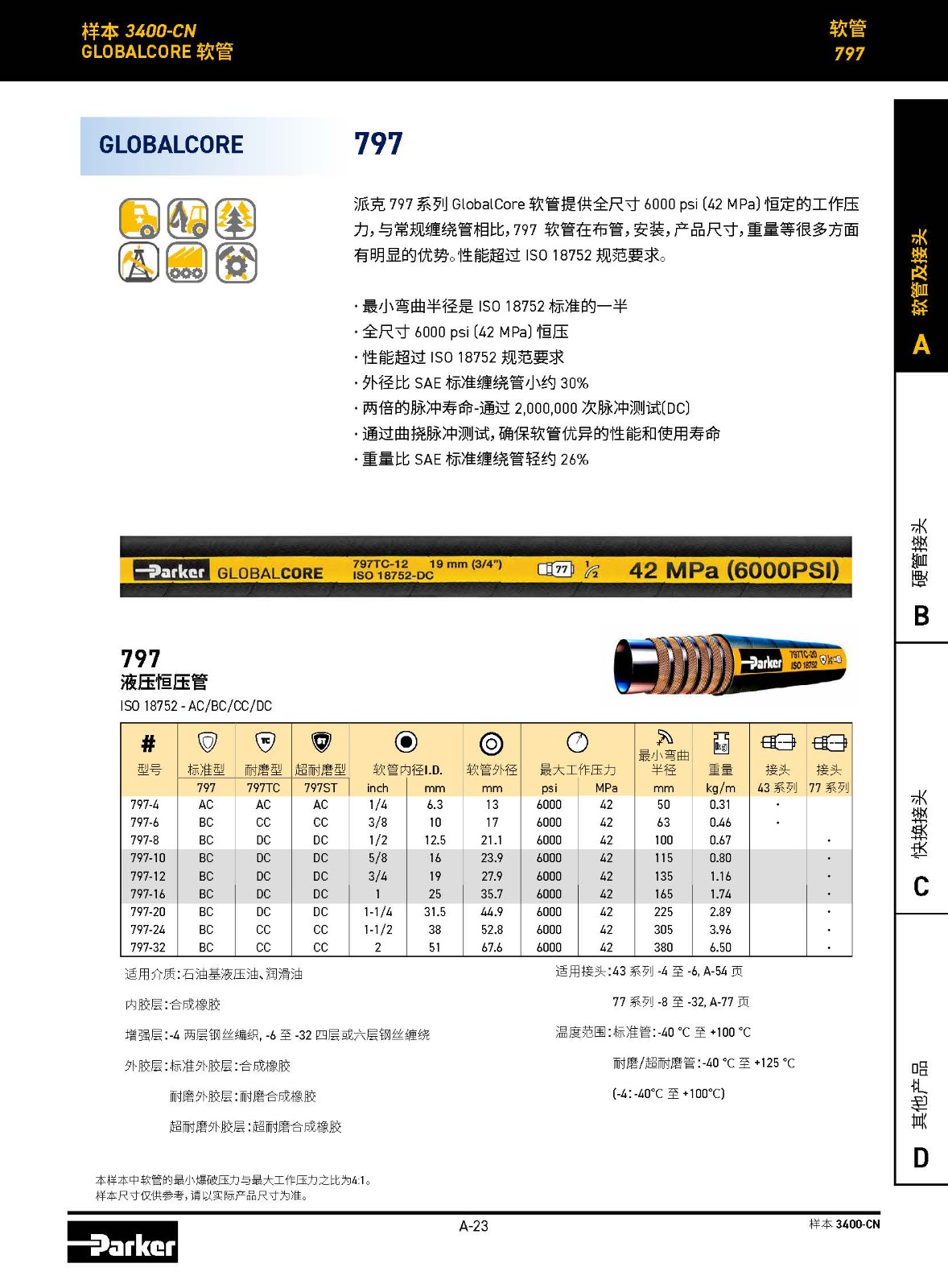派克 797 系列 GlobalCore 軟管提供全尺寸 6000 psi (42 MPa) 恒定的工作壓