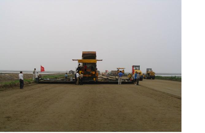 SP120青島城陽12.5m基層攤鋪施工現(xiàn)場