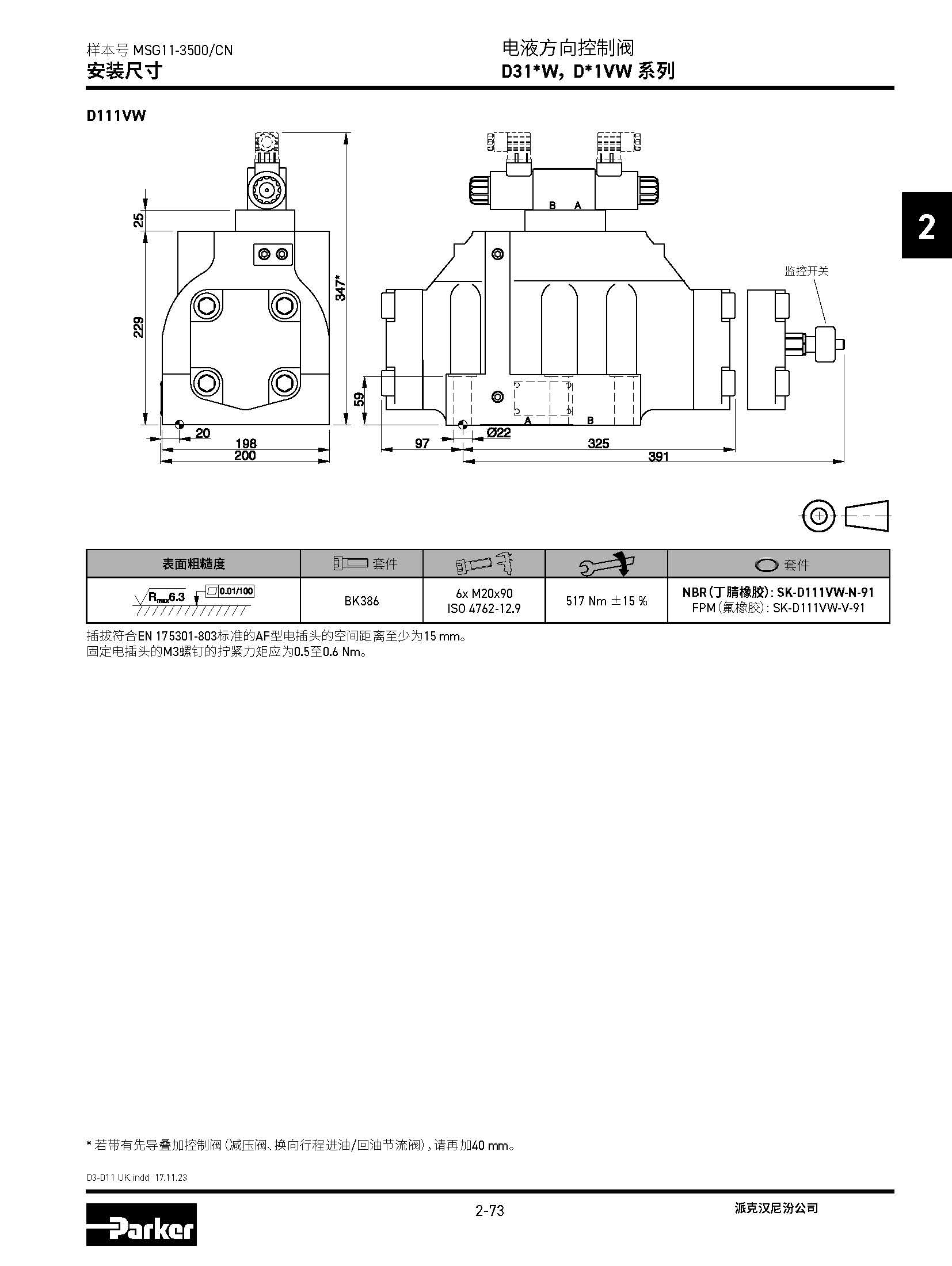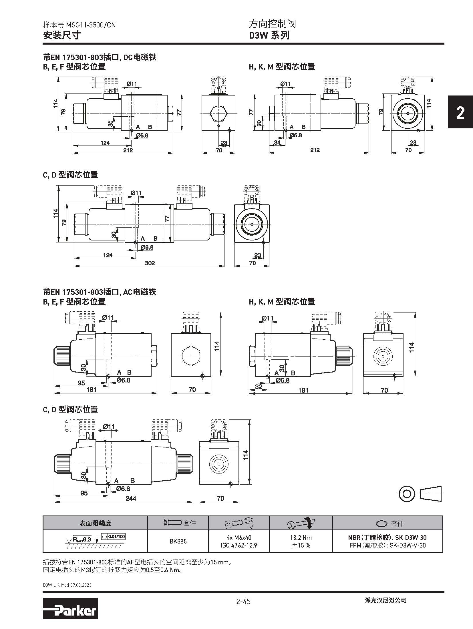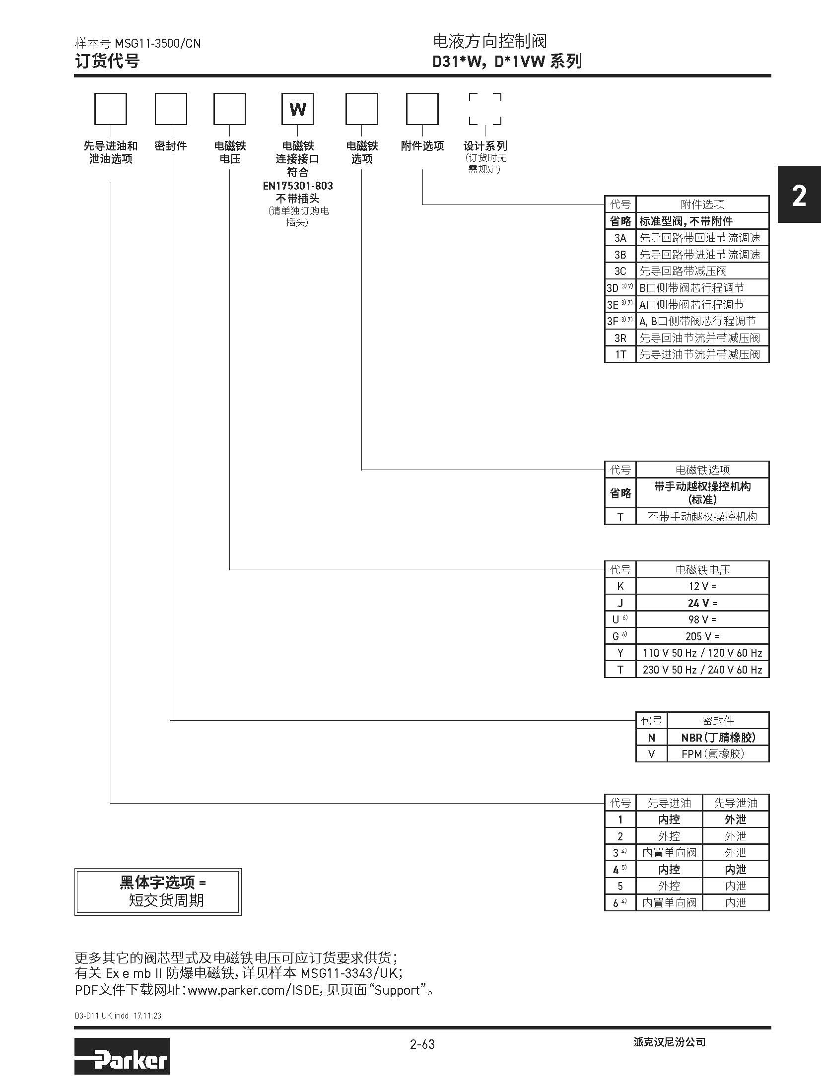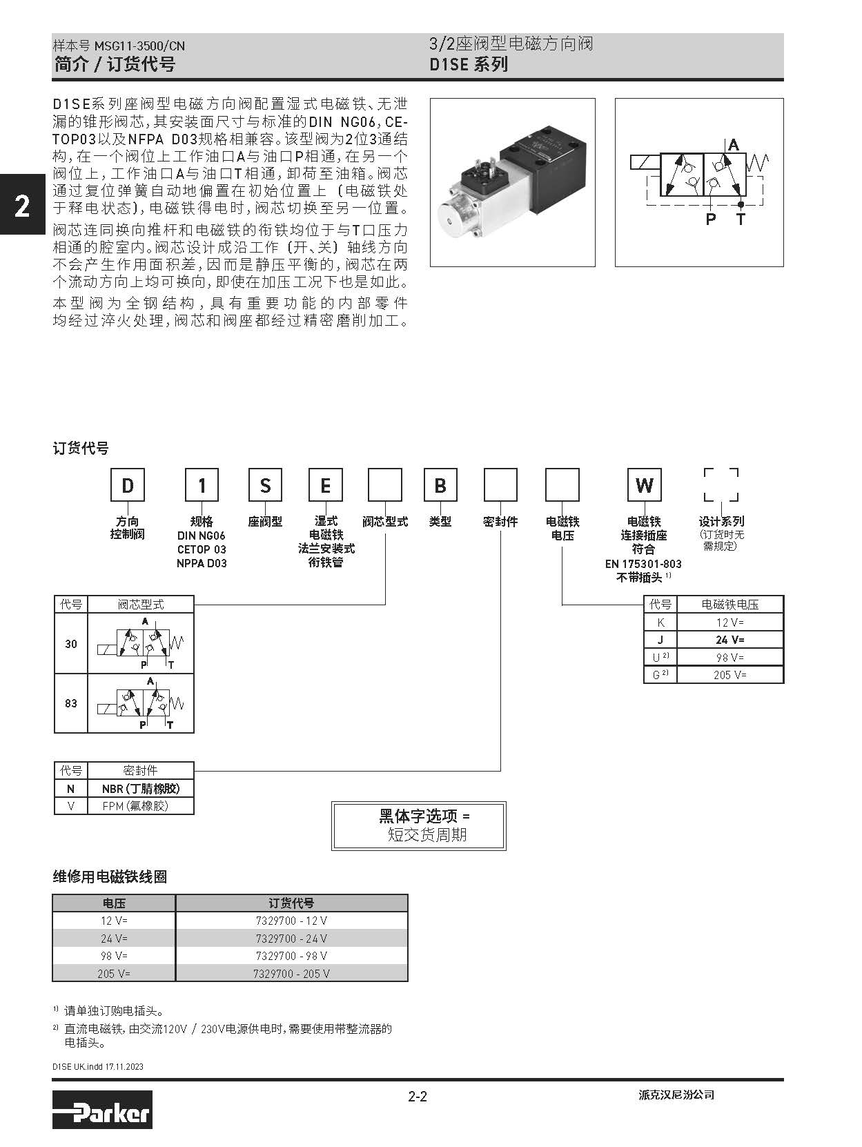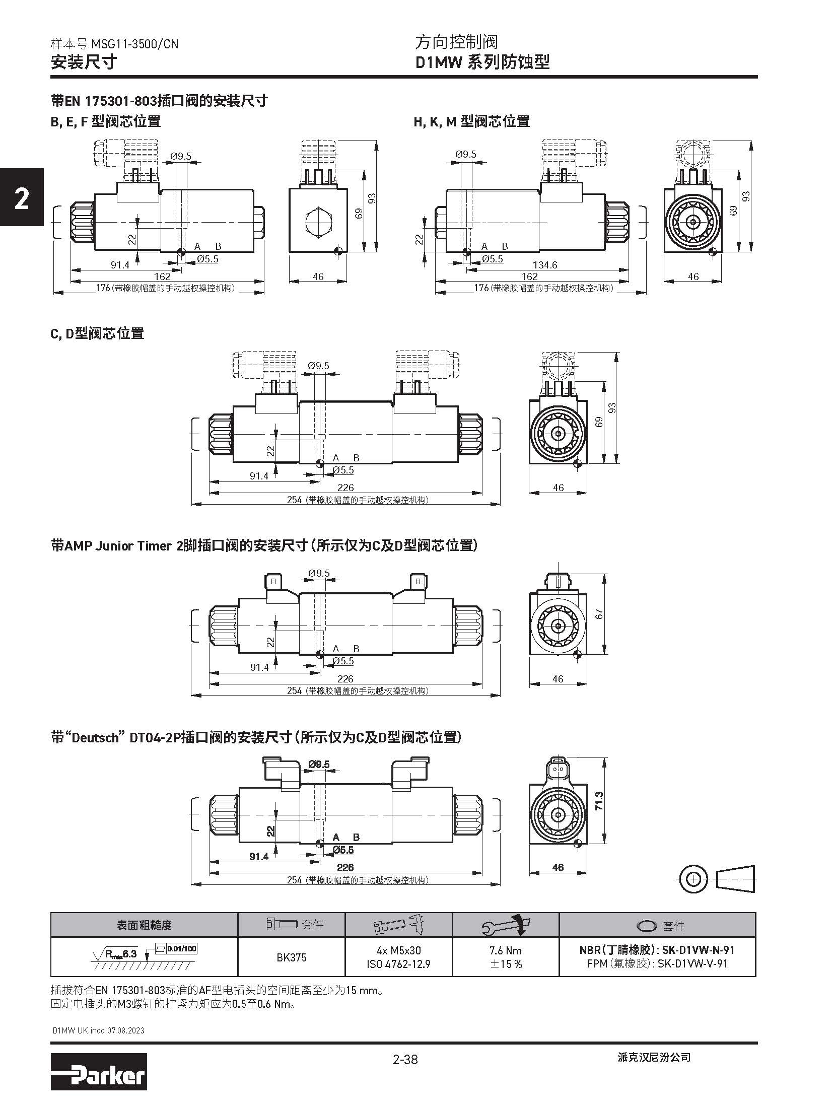 D1MW系列方向閥是基于標(biāo)準(zhǔn)D1VW系列的NG06規(guī)格滑閥 型電磁方向控制閥,但其閥體、電磁線圈及銜鐵管均具有 防腐蝕功能,且其電氣接口界面還具有典型的工程機(jī)械市 場(chǎng)所采用的防蝕接插件,如:AMP Junior Timer 及 DT04 2P “Deutsch”。