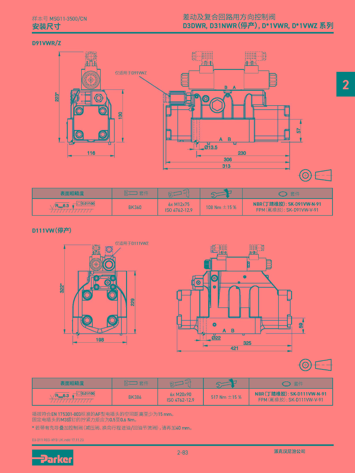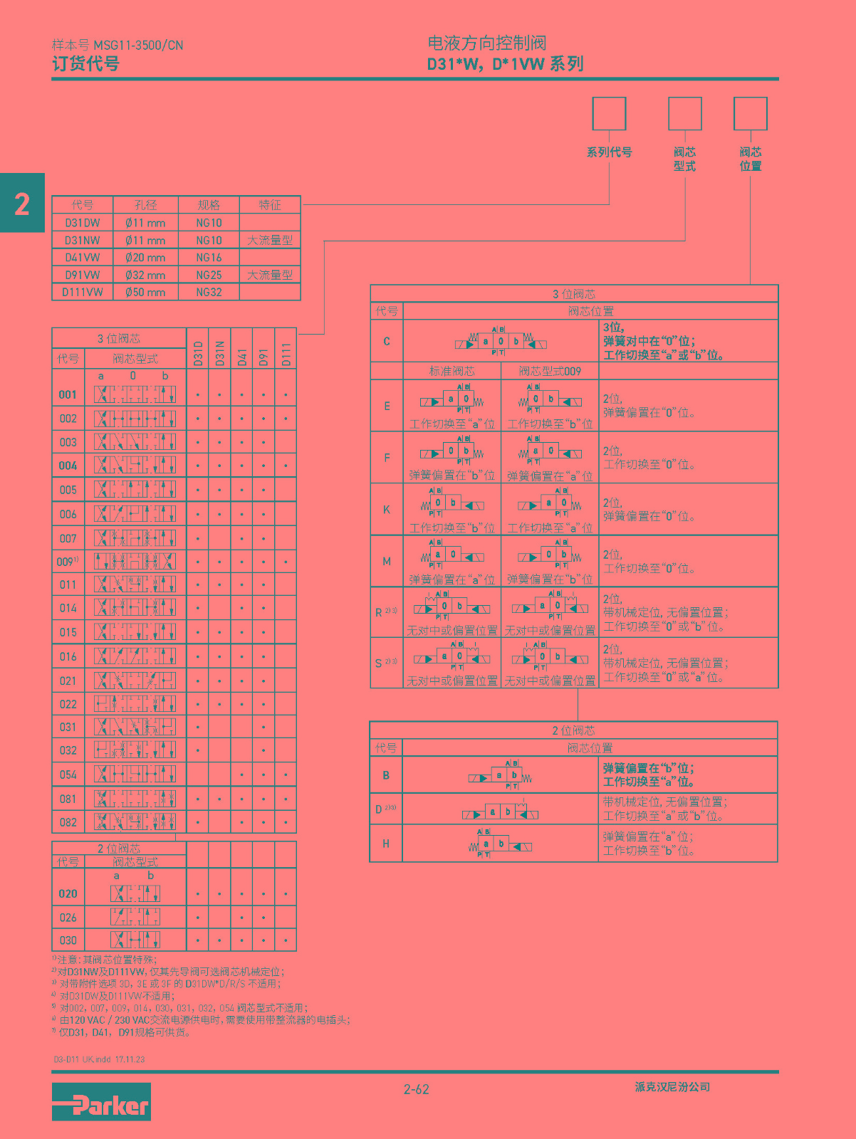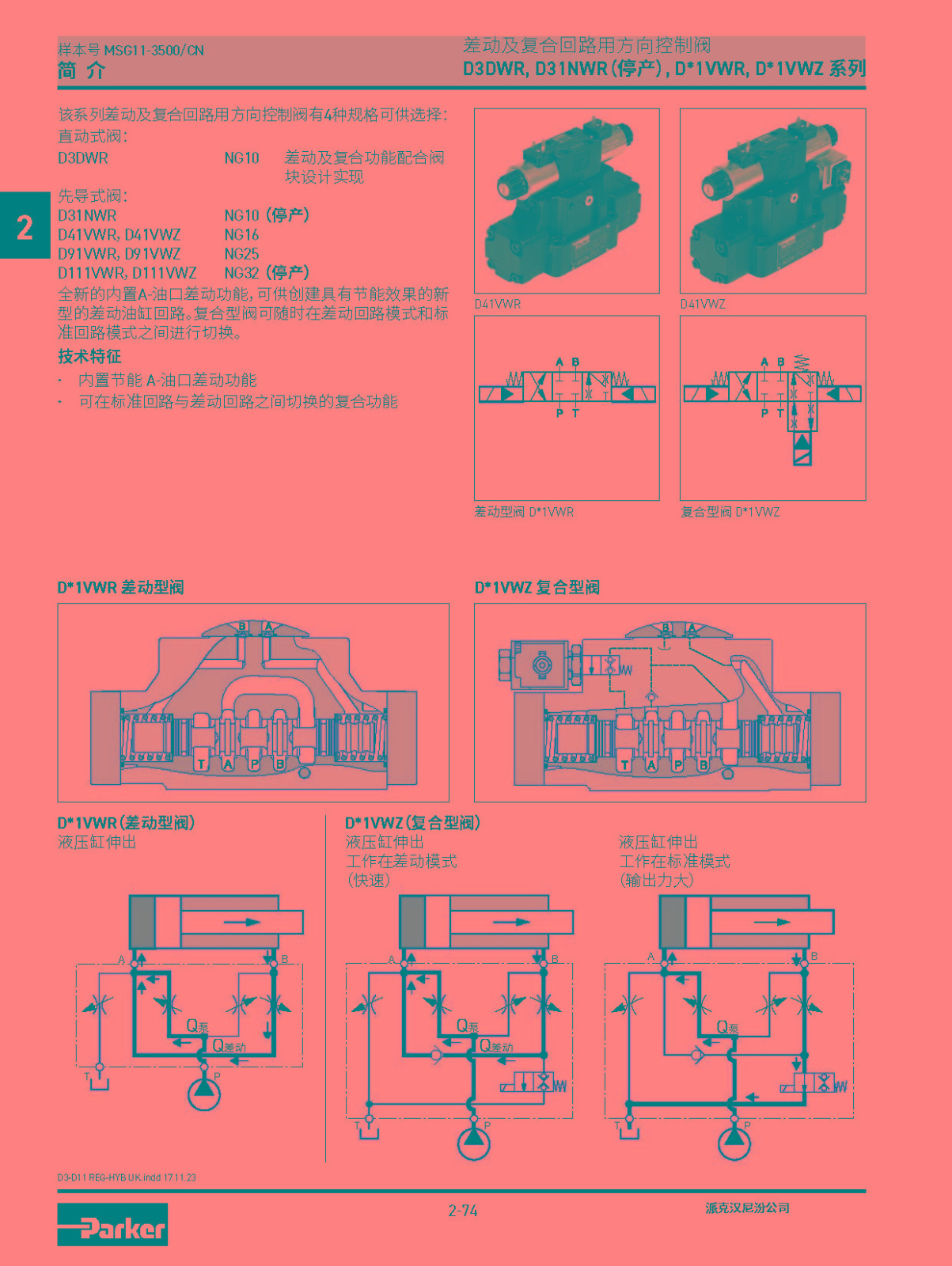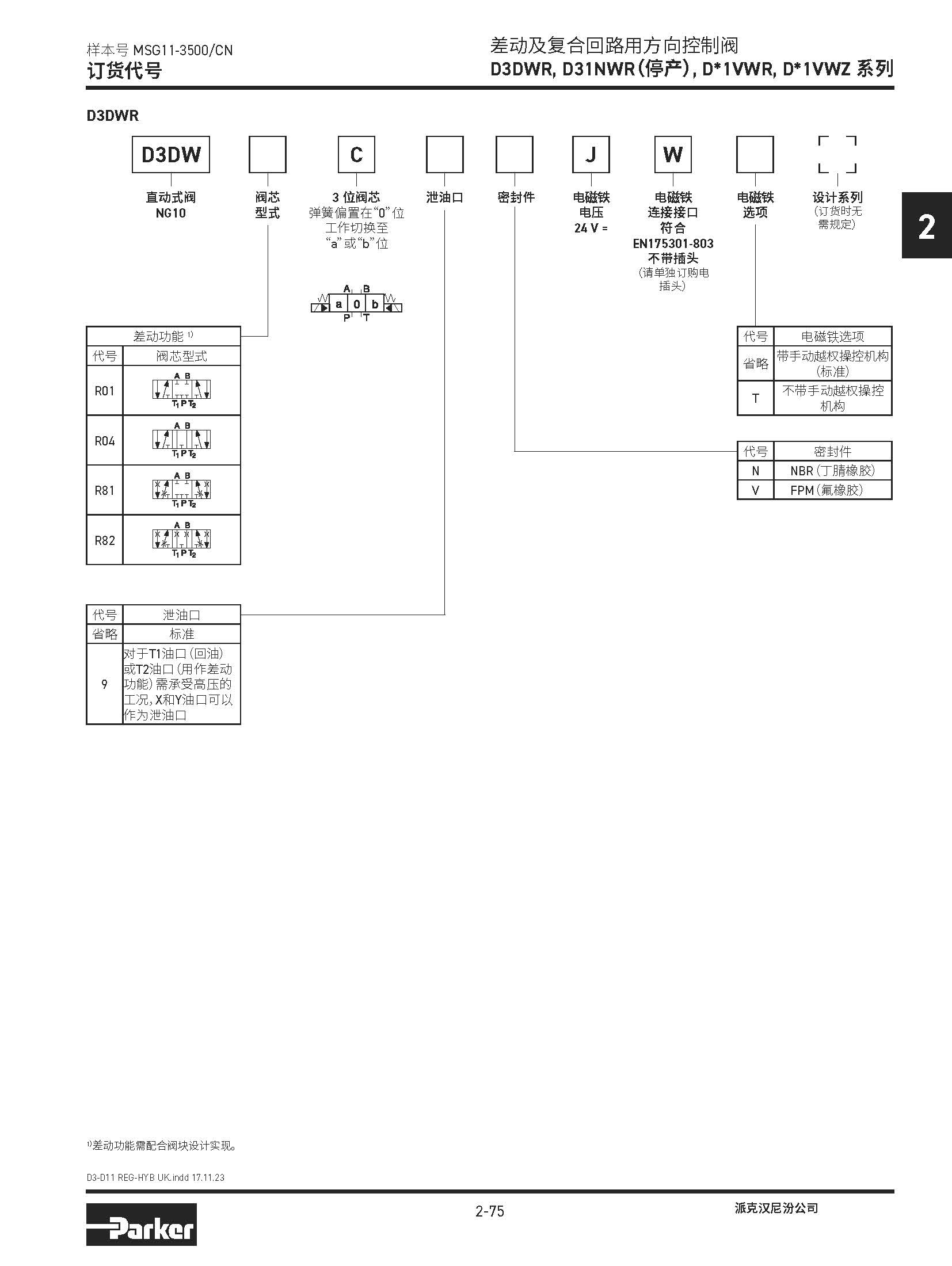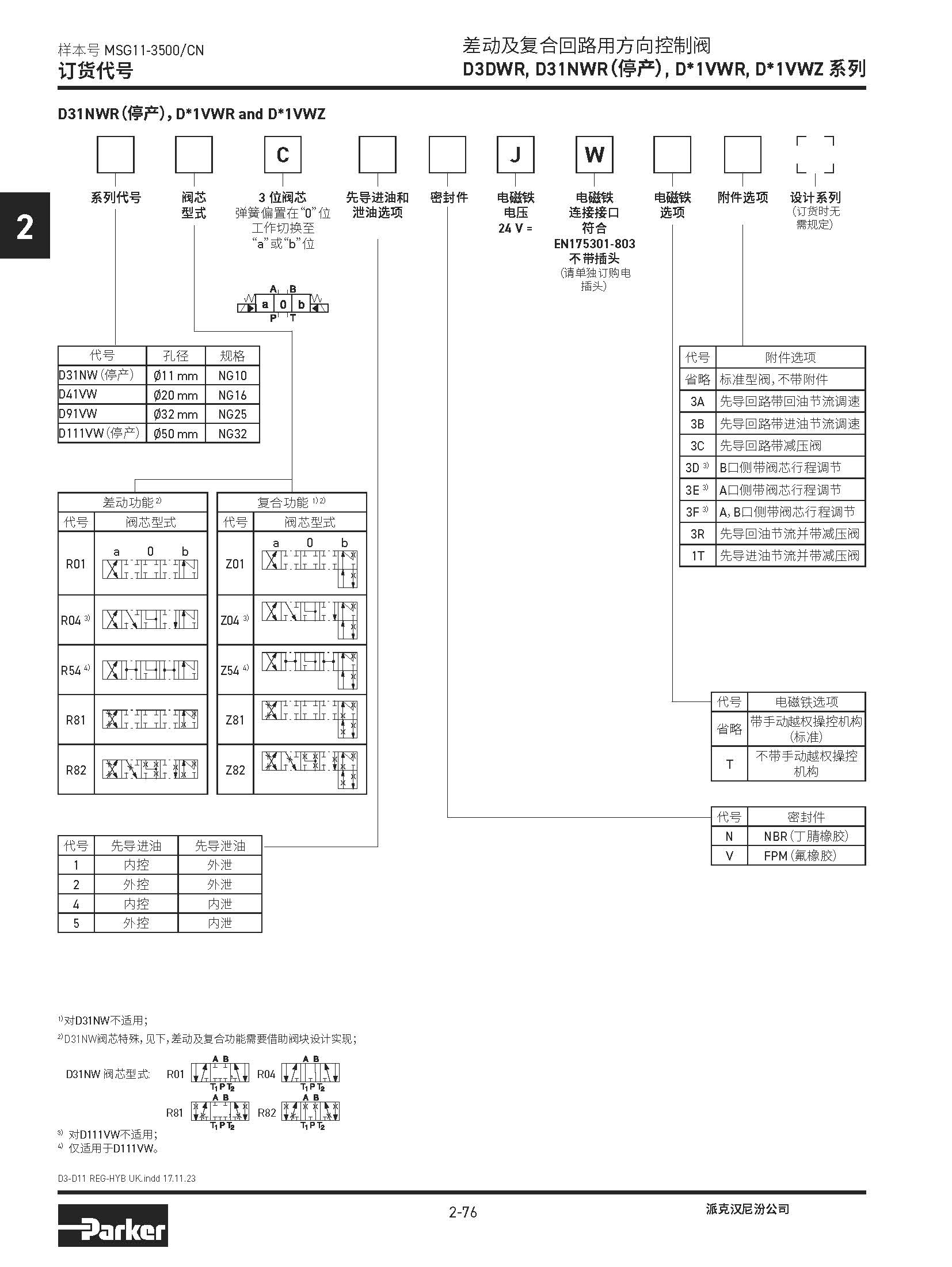 差動(dòng)及復(fù)合回路用方向控制閥 D3DWR, D31NWR(停產(chǎn)), D*1VWR, D*1VWZ 系列