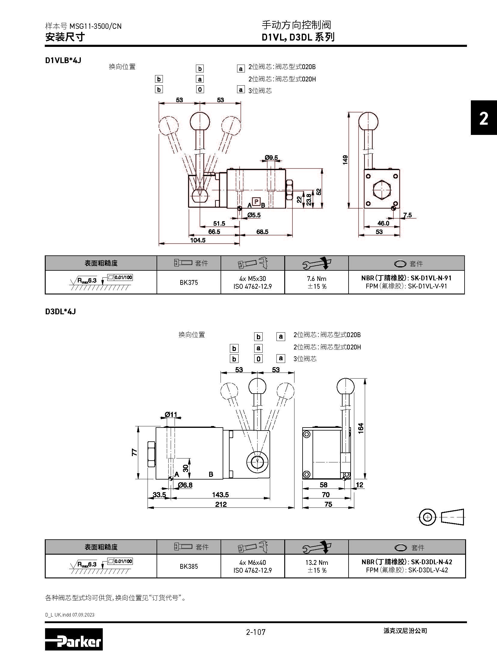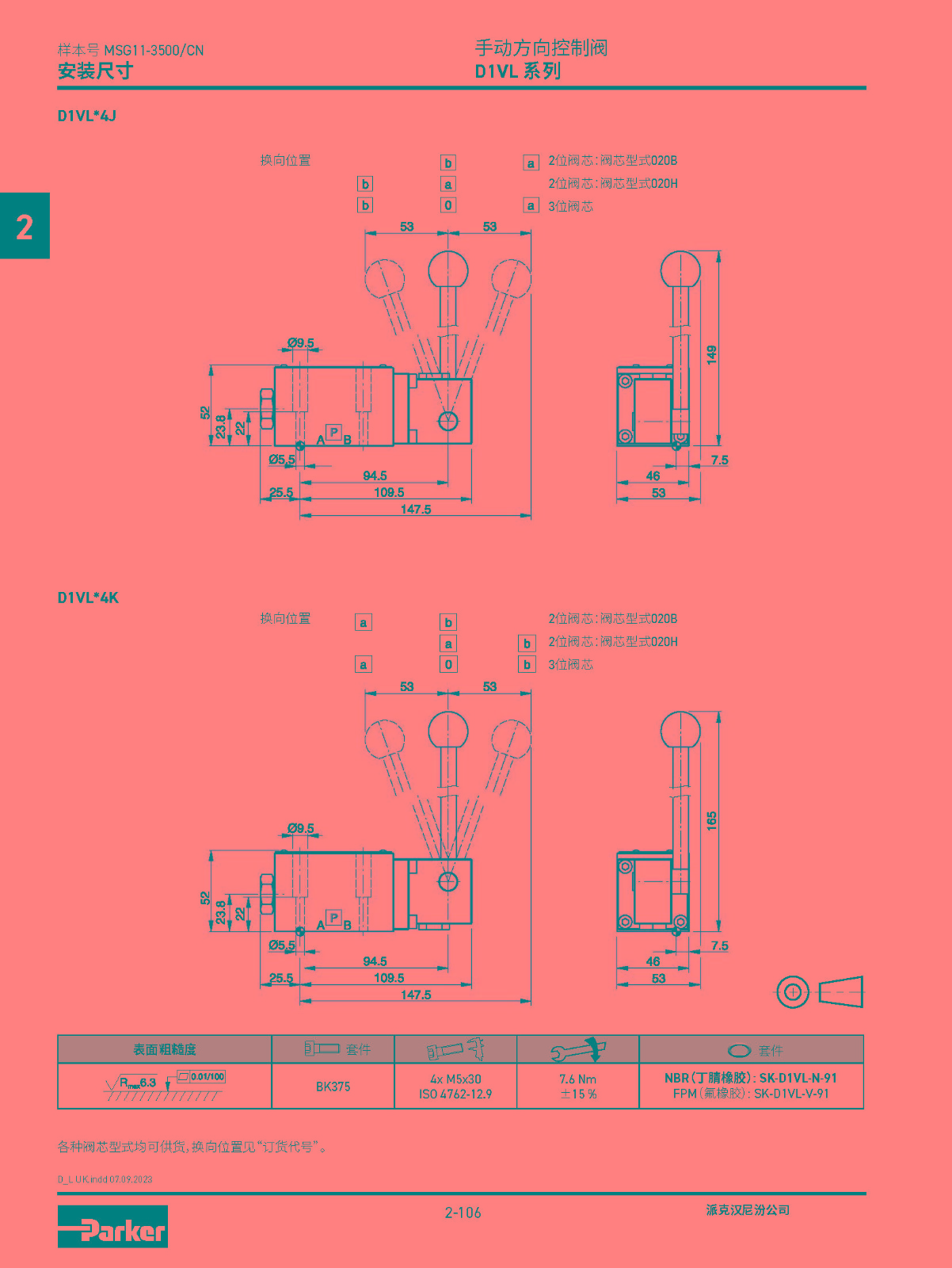 手動(dòng)方向控制閥 D1VL,D3DL,D4L,D9L 系列