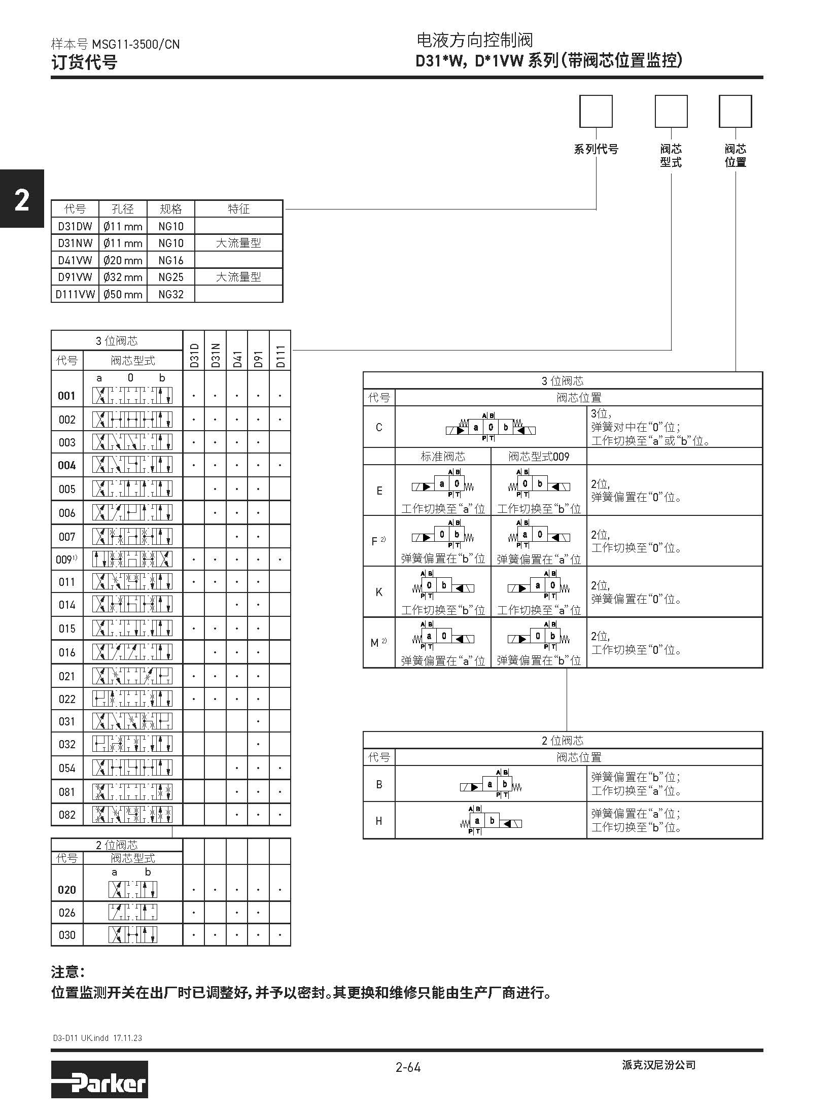 電液方向控制閥 D31*W, D*1VW 系列(帶閥芯位置監(jiān)控)