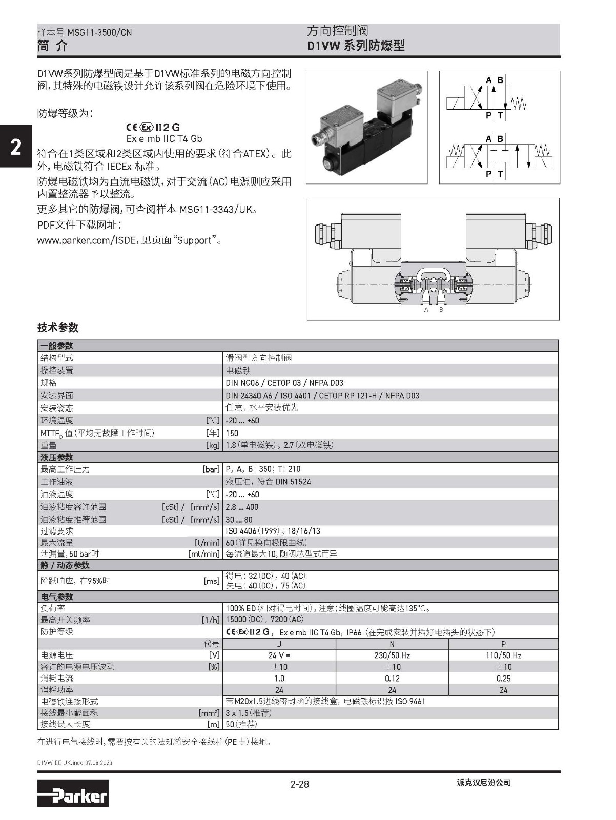 D1VW系列防爆型閥是基于D1VW標(biāo)準(zhǔn)系列的電磁方向控制 閥,其特殊的電磁鐵設(shè)計(jì)允許該系列閥在危險(xiǎn)環(huán)境下使用。