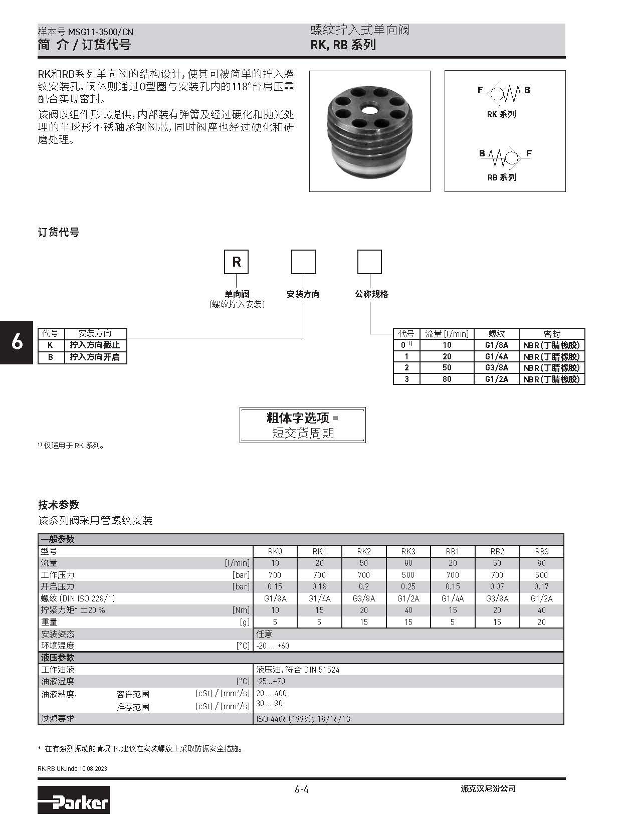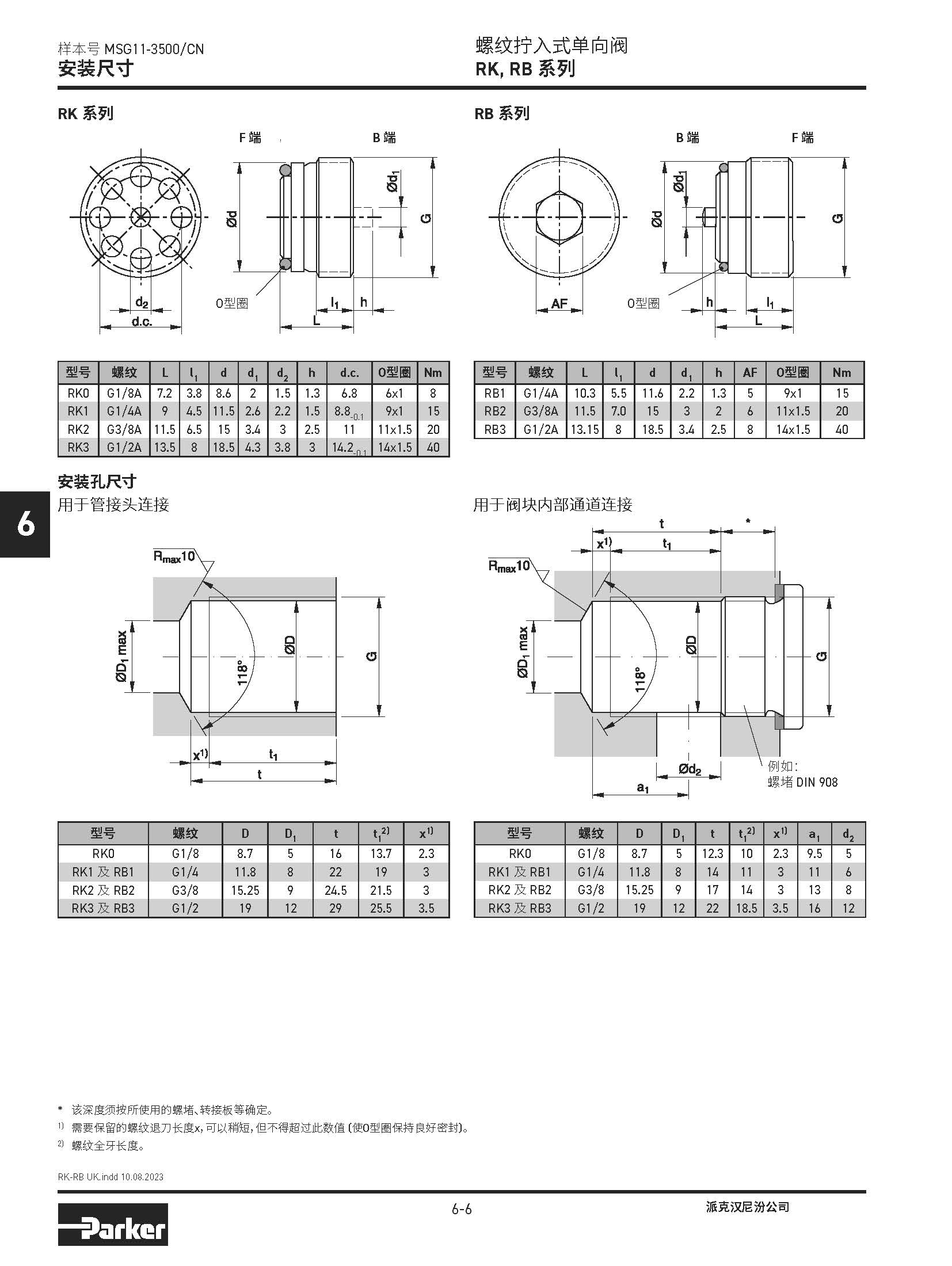 RK和RB系列單向閥的結(jié)構(gòu)設(shè)計(jì),使其可被簡單的擰入螺 紋安裝孔,閥體則通過 O型圈與安裝孔內(nèi)的118°臺肩壓靠配合實(shí)現(xiàn)密封。