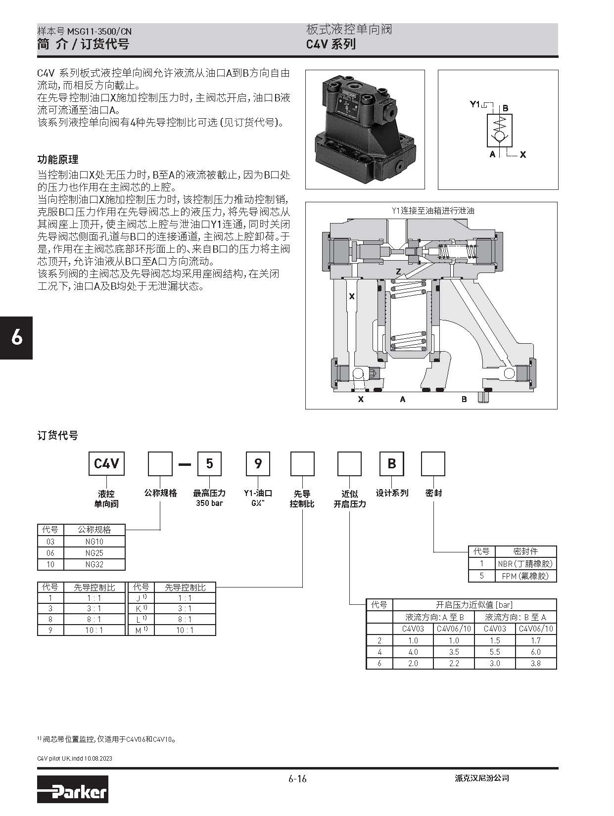 C4V 系列板式液控單向閥允許液流從油口A到B方向自由 流動(dòng),而相反方向截止。