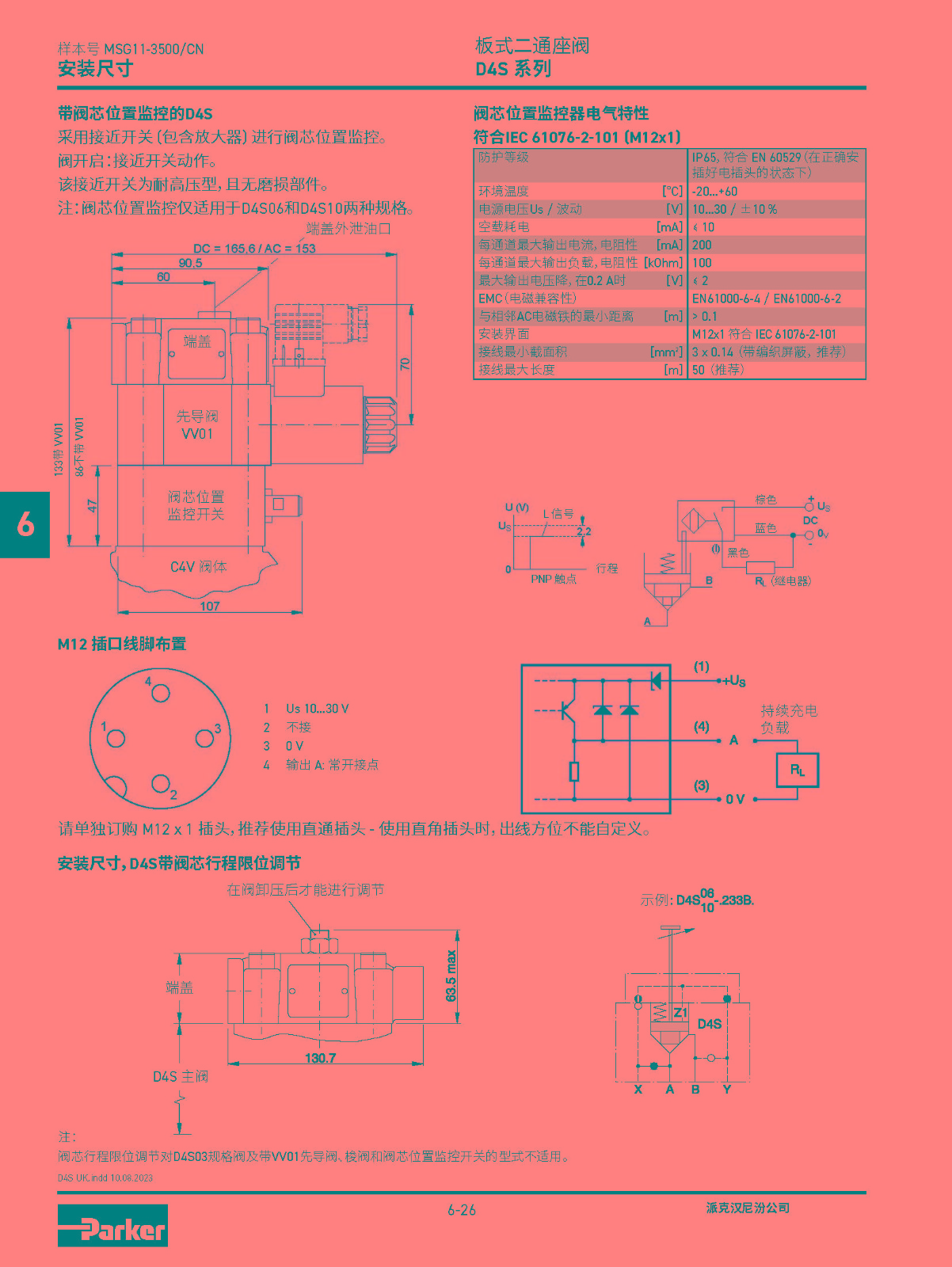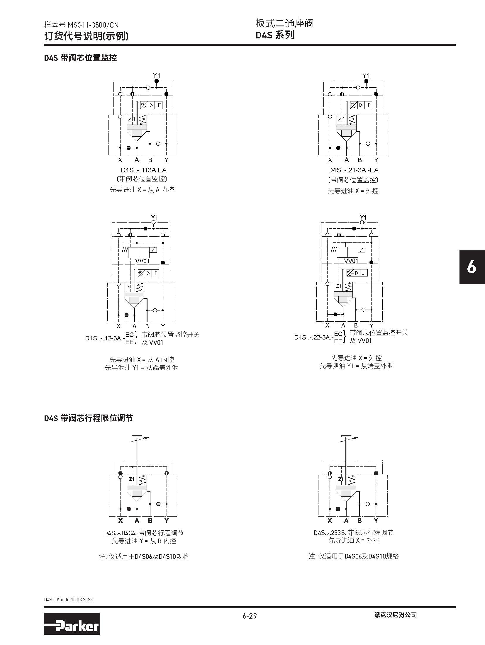 D4S系列板式二通座閥按方向控制功能設(shè)計(jì),具有多種類 型的閥芯、彈簧以及控制蓋板 – 包括帶梭閥、帶閥芯行程限 位調(diào)節(jié)、電磁先導(dǎo)閥 (VV01) 以及閥芯位置監(jiān)控開關(guān)等等