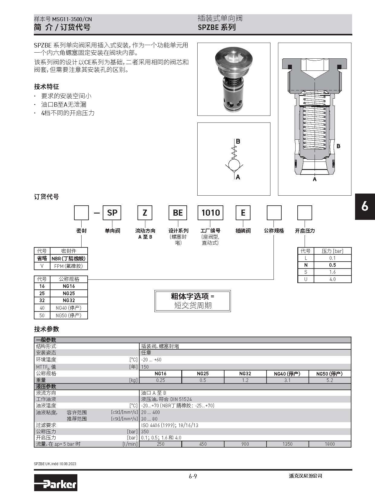 SPZBE 系列單向閥采用插入式安裝,作為一個(gè)功能單元用 一個(gè)內(nèi)六角螺塞固定安裝在閥塊內(nèi)部。
