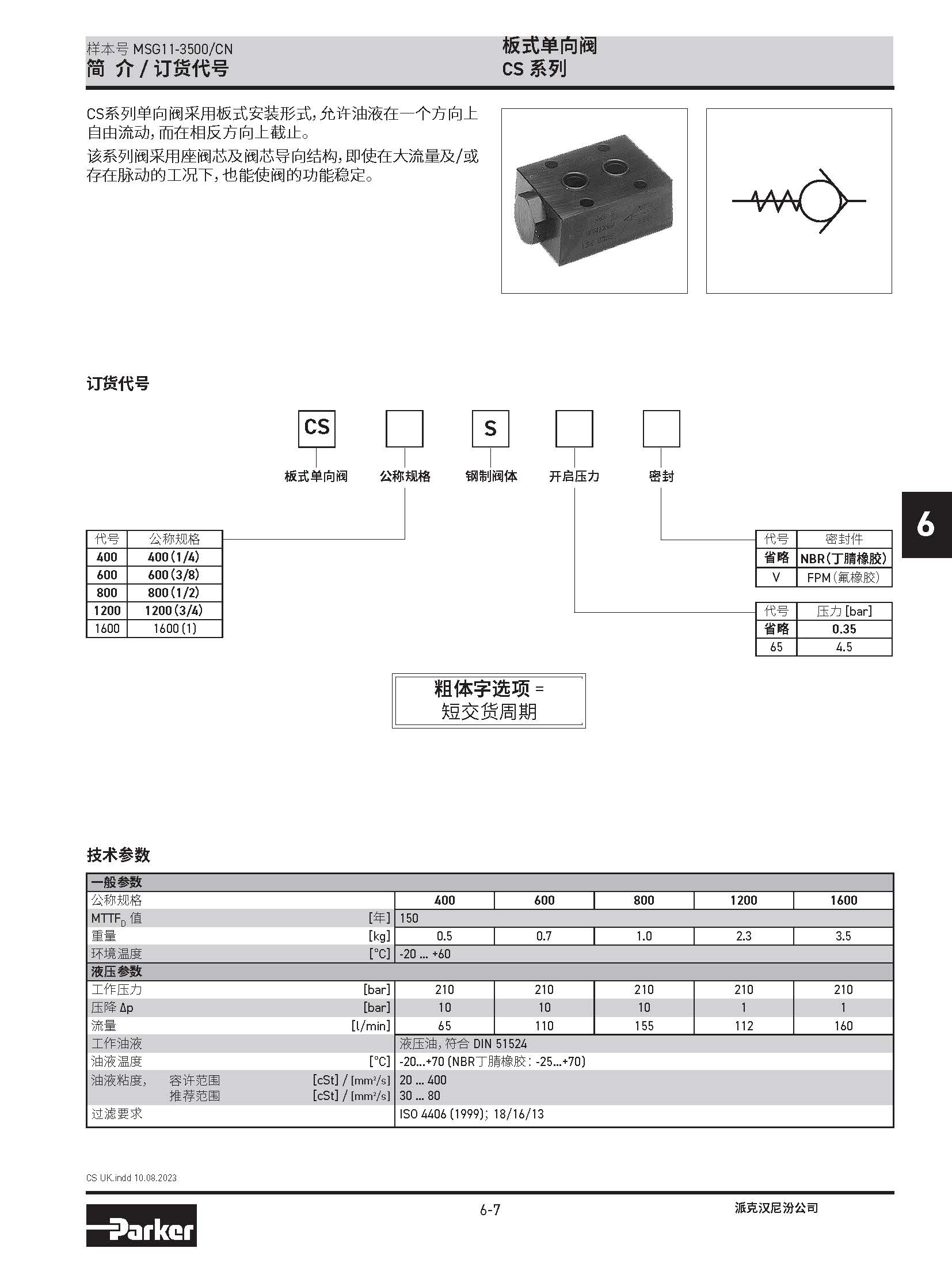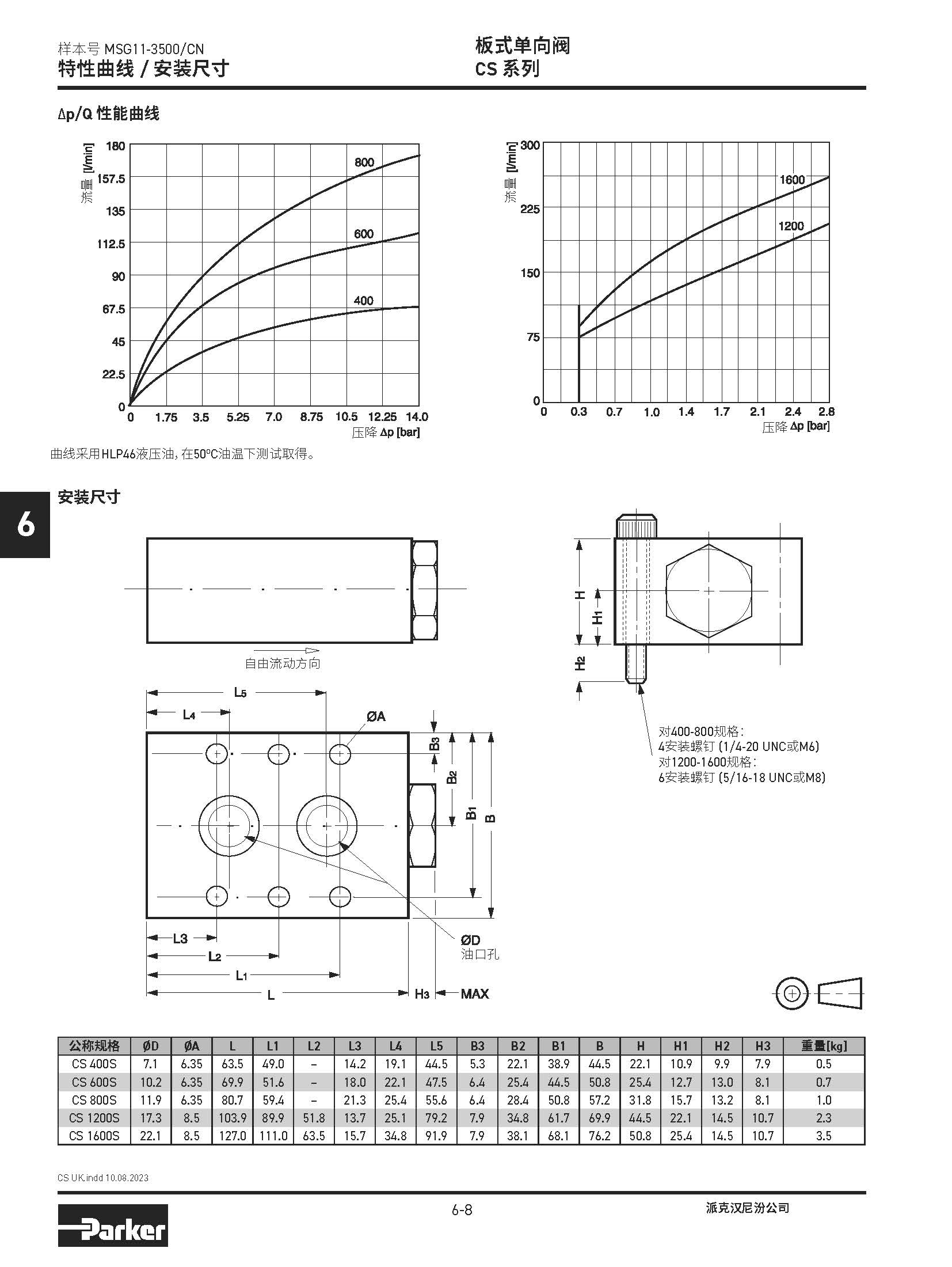 CS系列單向閥采用板式安裝形式,允許油液在一個(gè)方向上 自由流動(dòng),而在相反方向上截止。