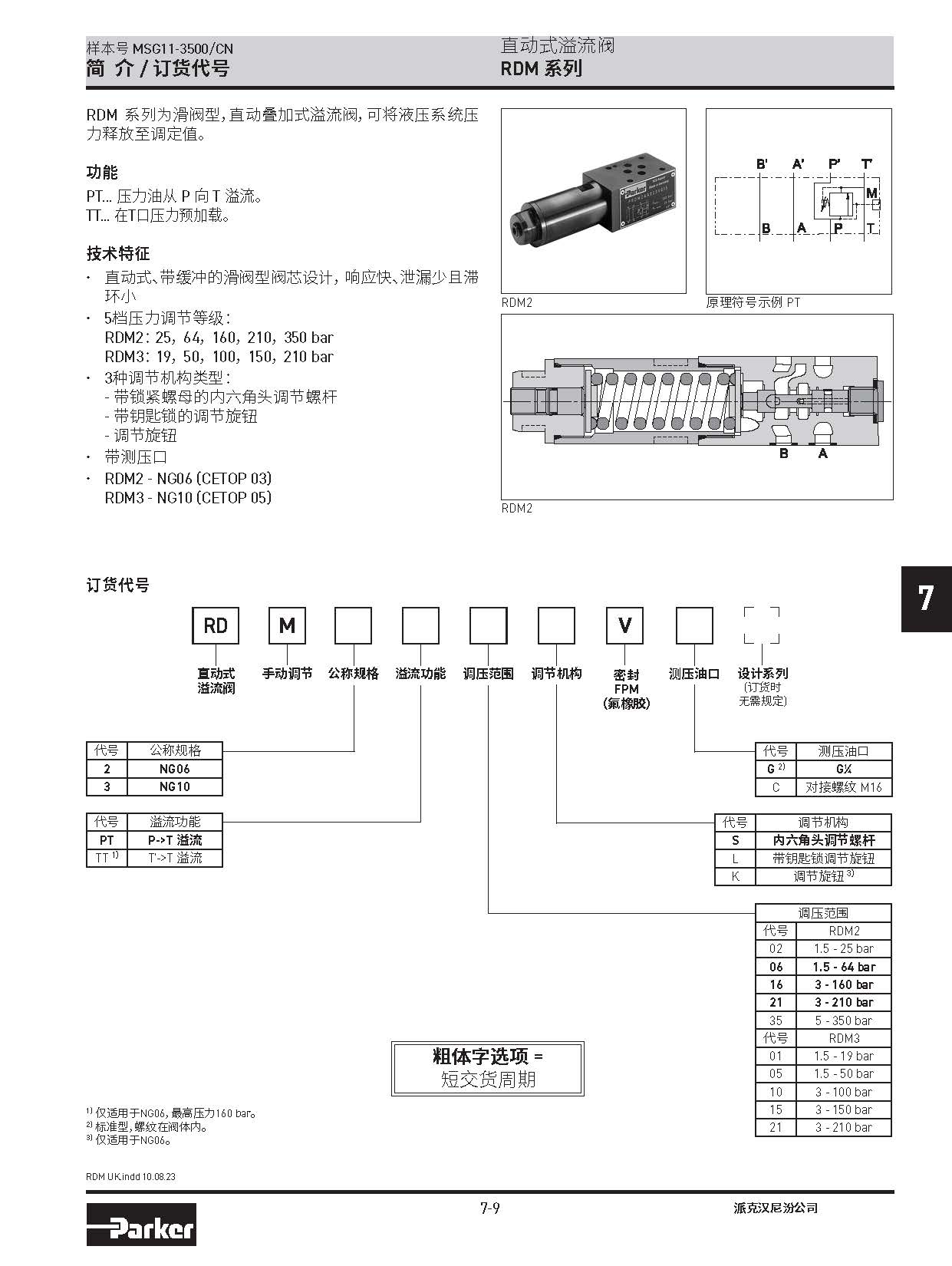 RDM 系列為滑閥型,直動疊加式溢流閥,可將液壓系統(tǒng)壓 力釋放至調(diào)定值。