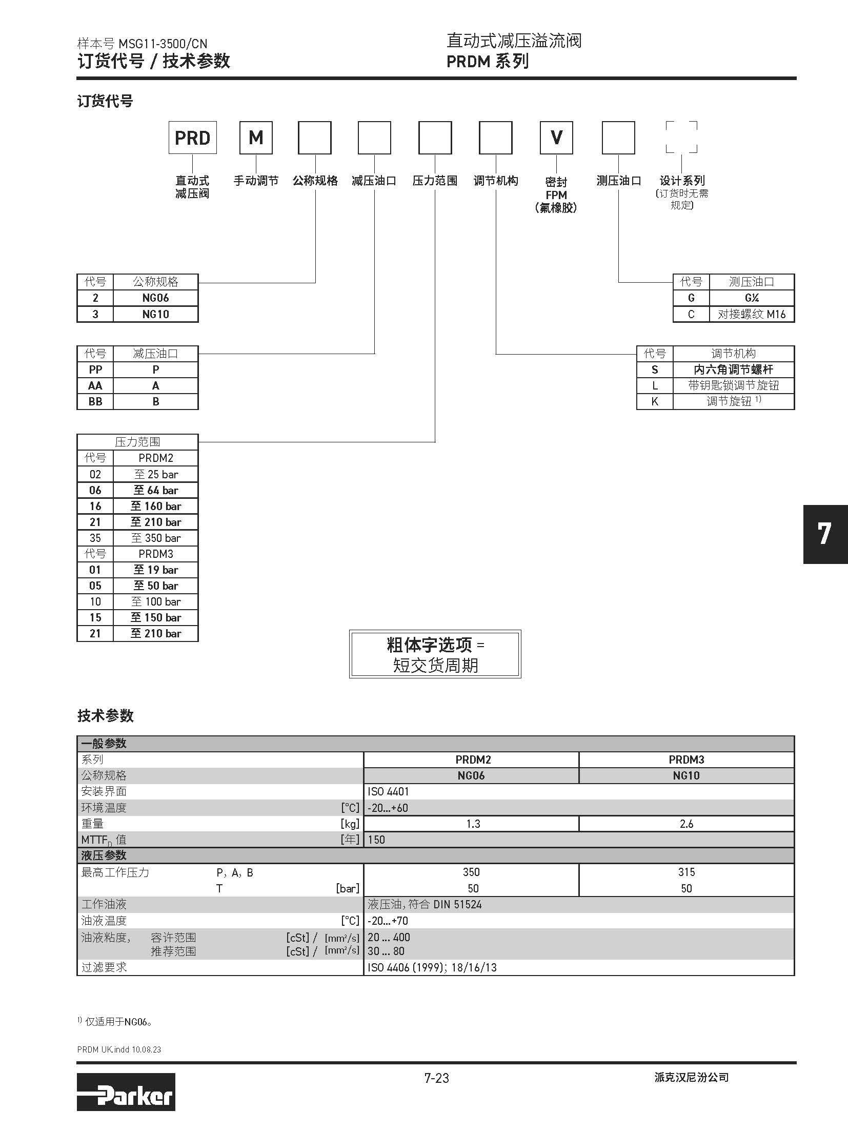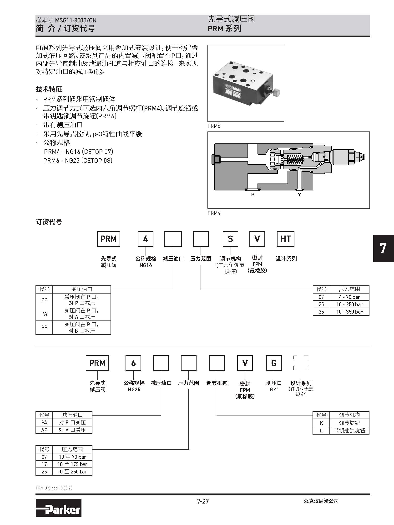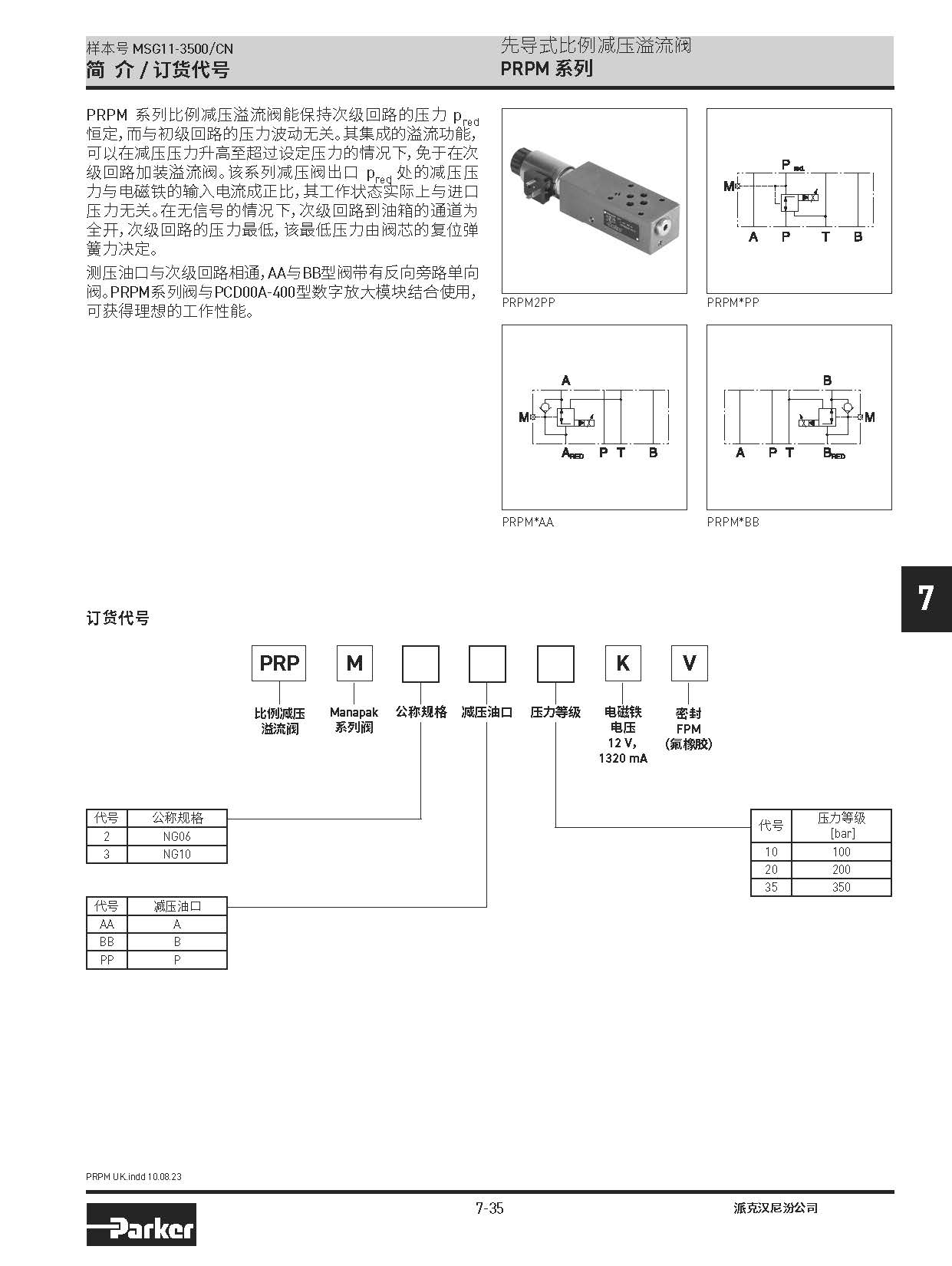 先導(dǎo)式比例減壓溢流閥 PRPM 系列