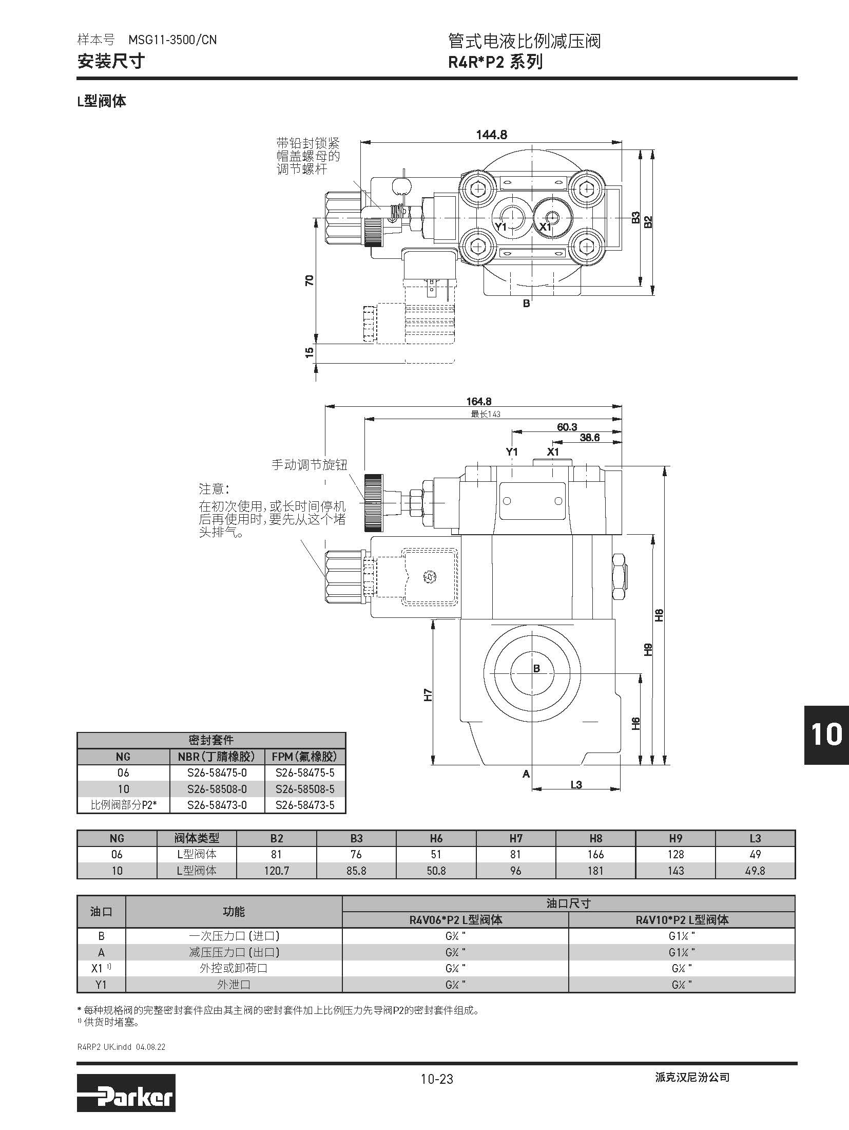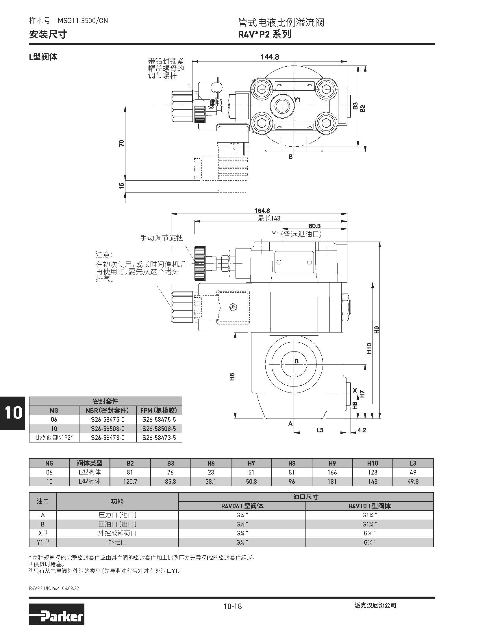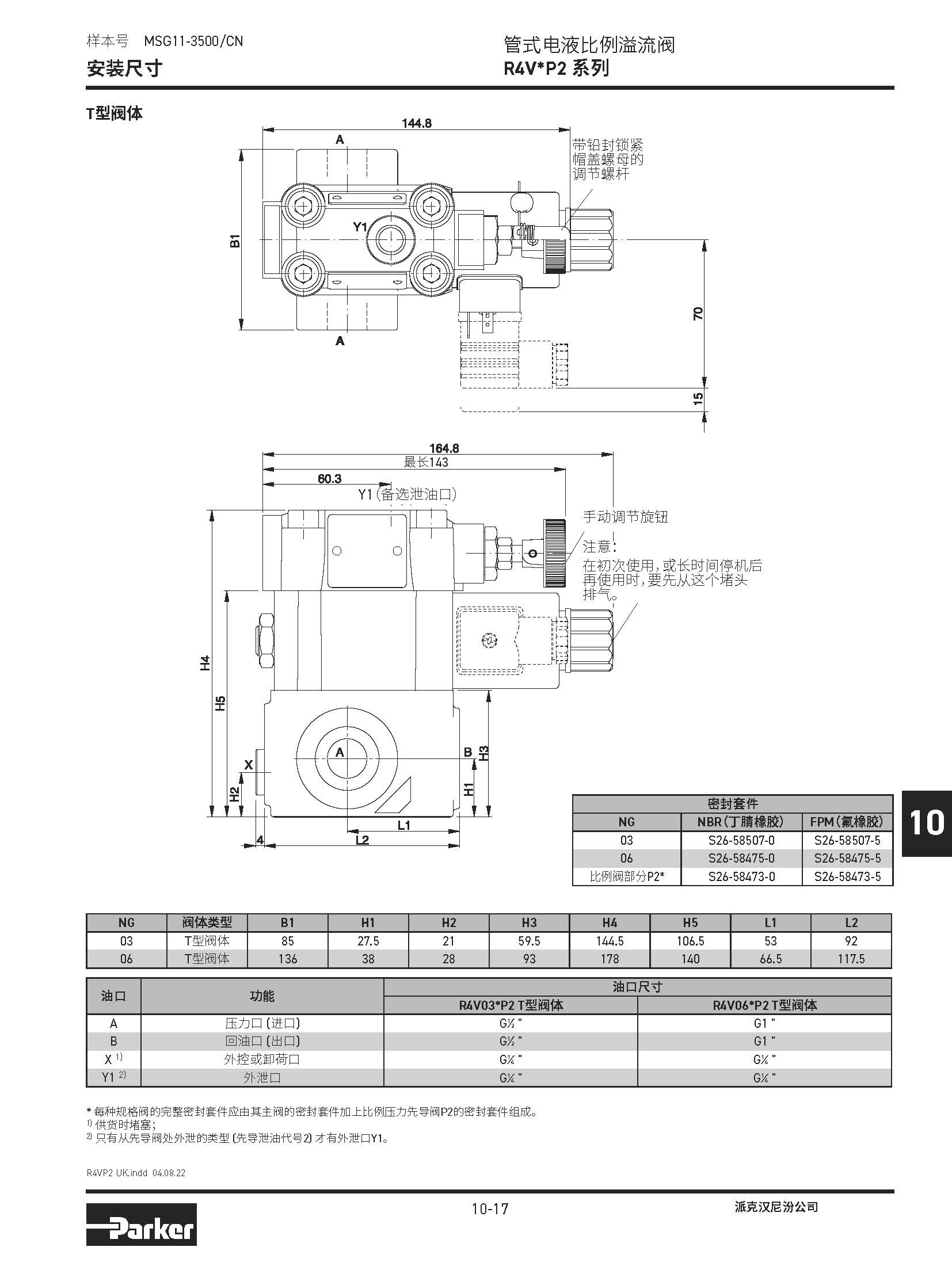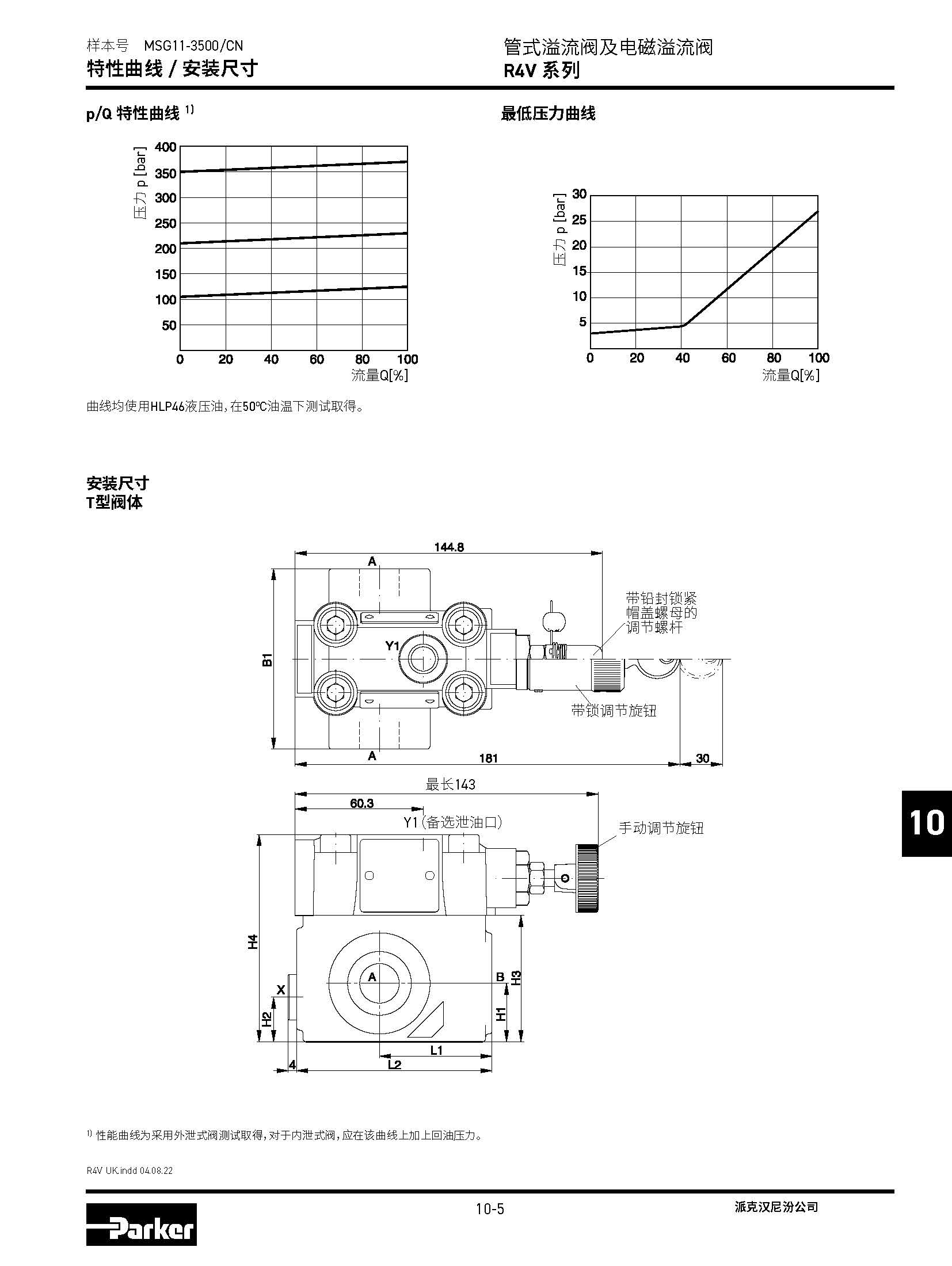 R4V*P2系列管式電液比例溢流閥的設(shè)計(jì)以機(jī)械調(diào)節(jié)的R4V 系列管式溢流閥為基礎(chǔ),增加的電磁比例操控先導(dǎo)單元疊 加安裝在機(jī)械操控先導(dǎo)閥與主級(jí)閥之間,可實(shí)現(xiàn)壓力連續(xù) 調(diào)節(jié)的功能。
