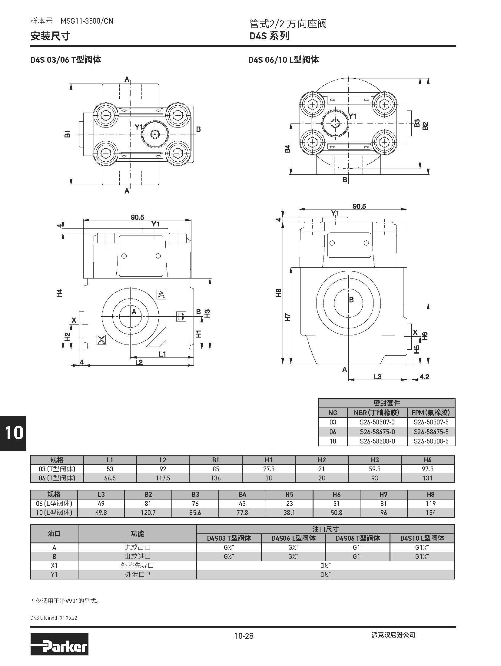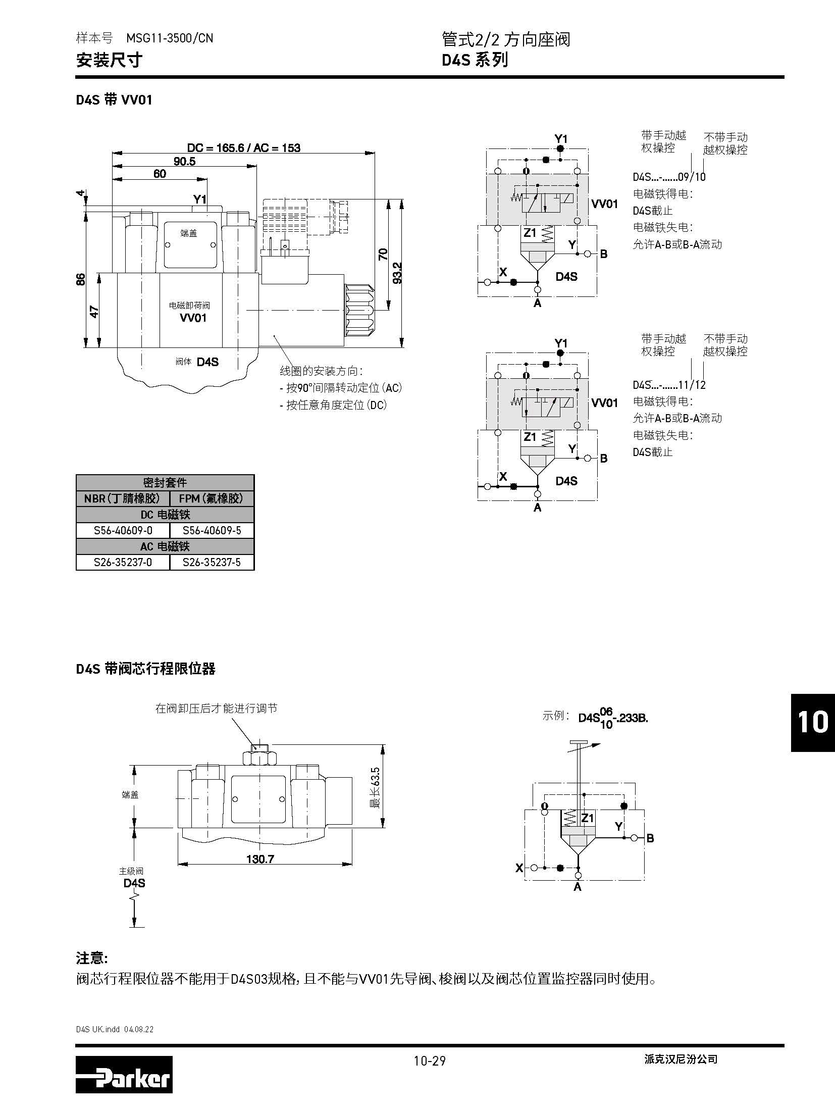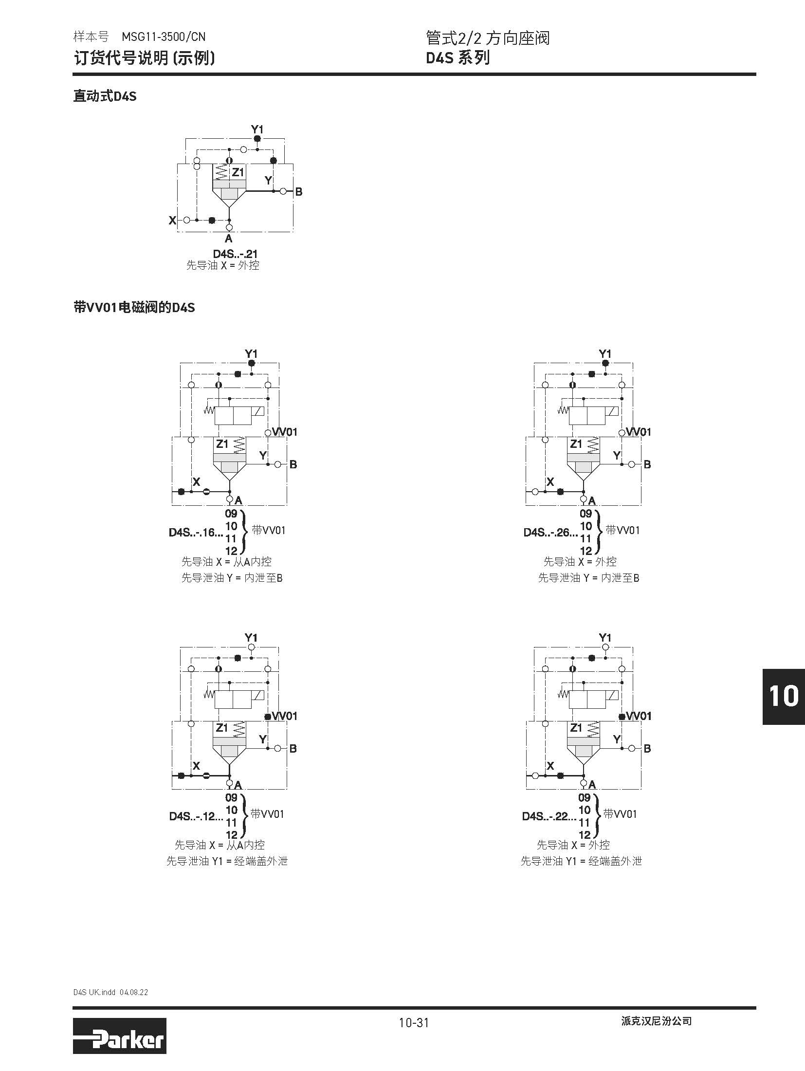 D4S系列管式二通座閥設(shè)計(jì)用于方向控制功能,由于其閥 芯、主閥彈簧以及控制蓋板的品種類型豐富(控制蓋板可安 裝先導(dǎo)梭閥、閥芯行程限位器、先導(dǎo)電磁閥 VV01以及閥芯位 置監(jiān)控開(kāi)關(guān)等),可以選用它們組成額定流量達(dá)600l/min的 獨(dú)立液壓回路。