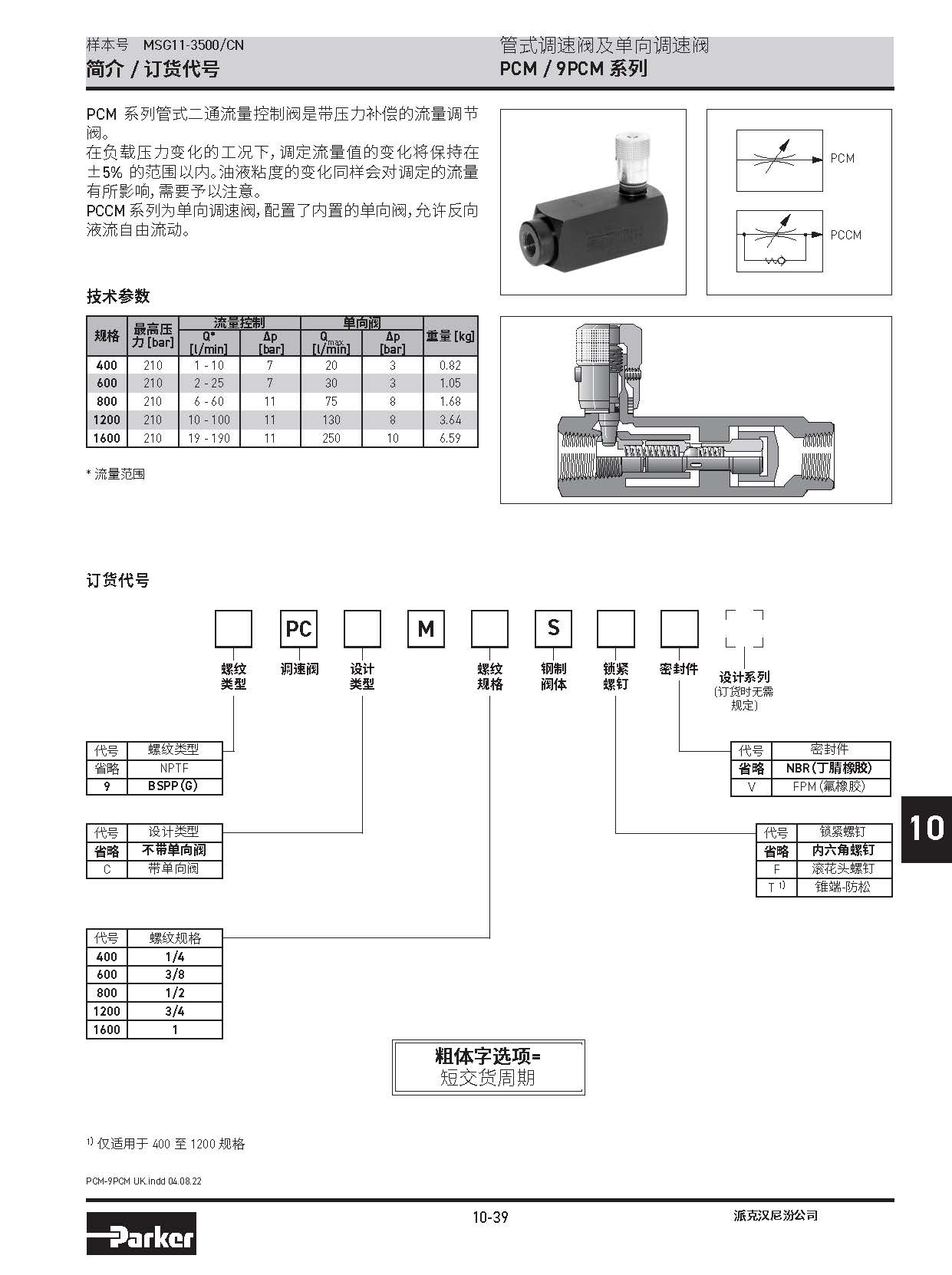 管式調(diào)速閥及單向調(diào)速閥 PCM / 9PCM 系列
