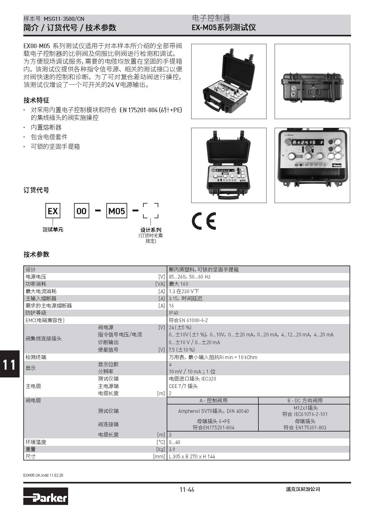 EX00-M05 系列測(cè)試儀適用于對(duì)本樣本所介紹的全部帶閥 載電子控制器的比例閥及伺服比例閥進(jìn)行檢測(cè)和調(diào)試。