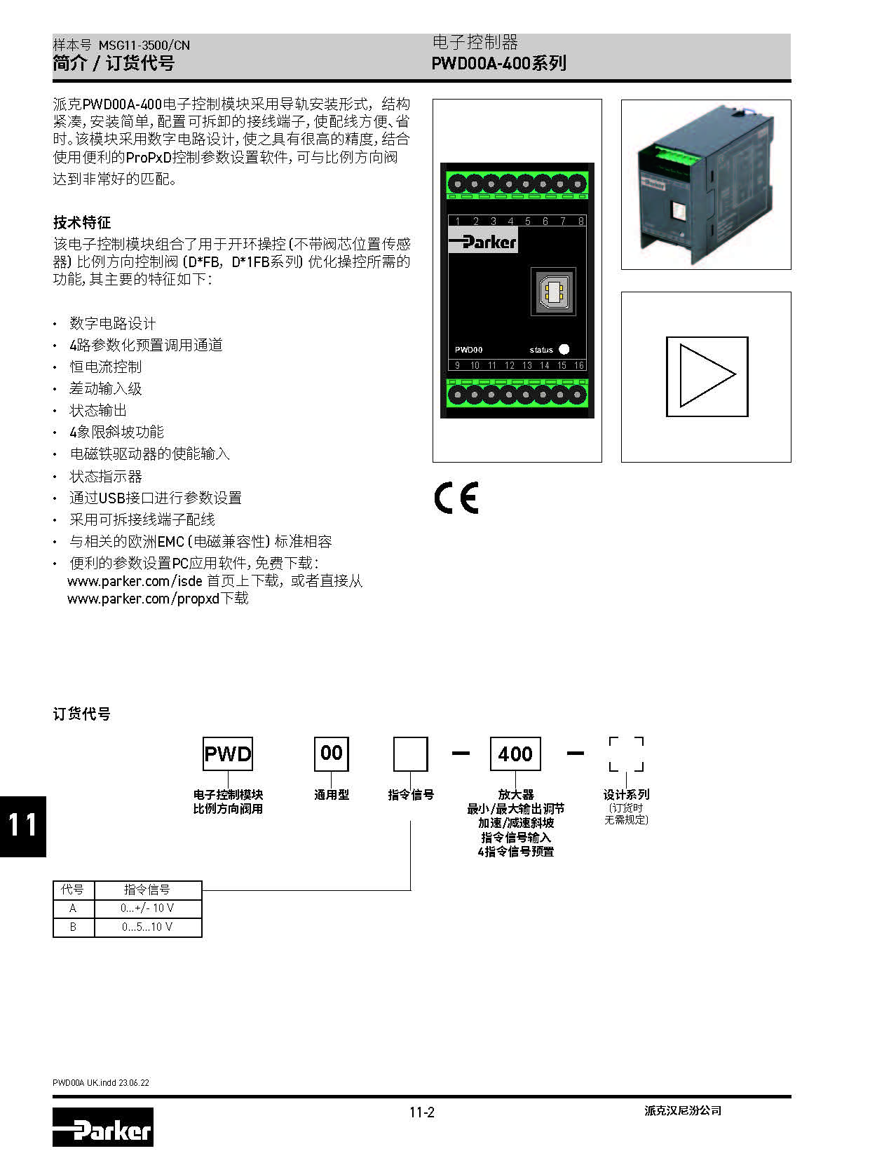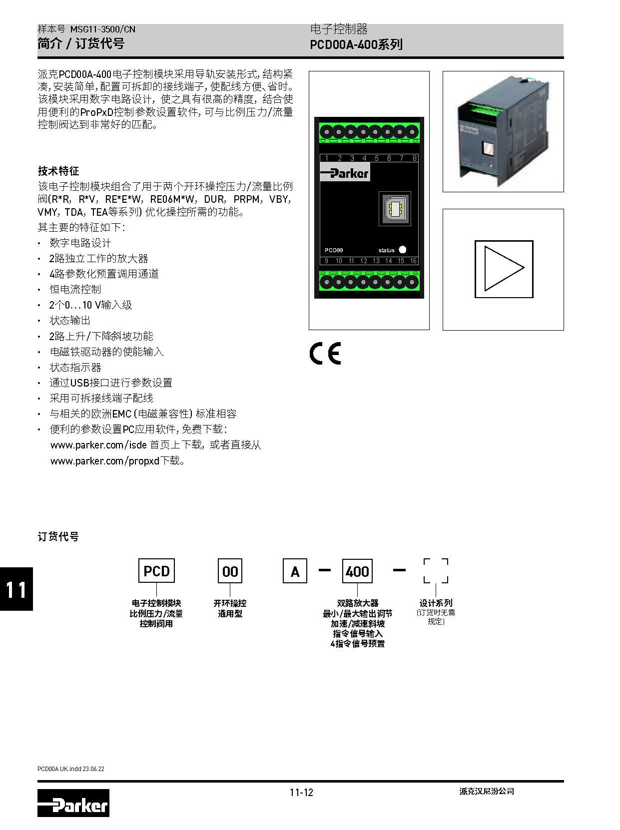 派克PCD00A-400電子控制模塊采用導(dǎo)軌安裝形式,結(jié)構(gòu)緊湊,安裝簡(jiǎn)單,配置可拆卸的接線端子,使配線方便、省時(shí)。