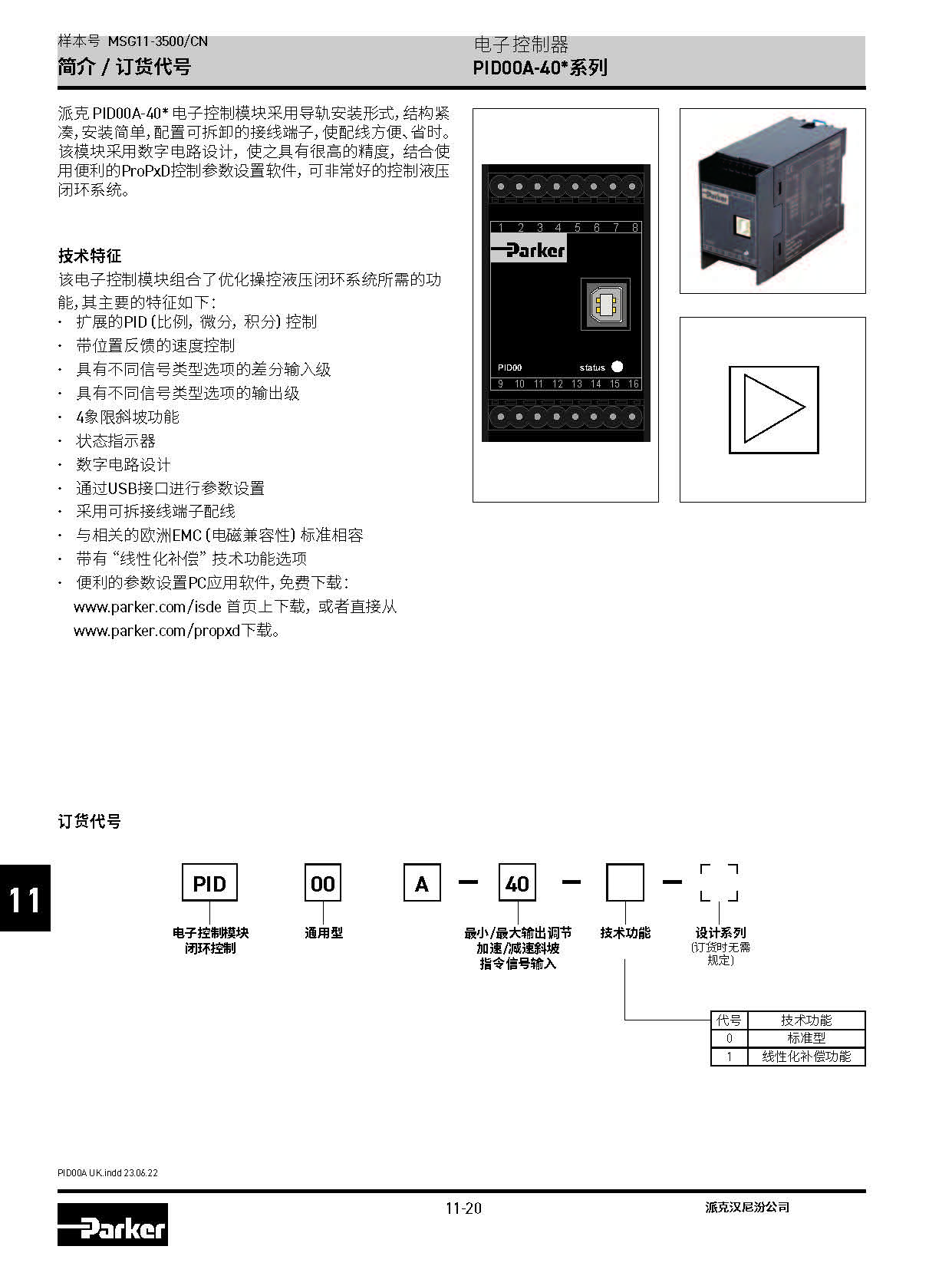派克 PID00A-40* 電子控制模塊采用導(dǎo)軌安裝形式,結(jié)構(gòu)緊 湊,安裝簡(jiǎn)單,配置可拆卸的接線端子,使配線方便、省時(shí)。