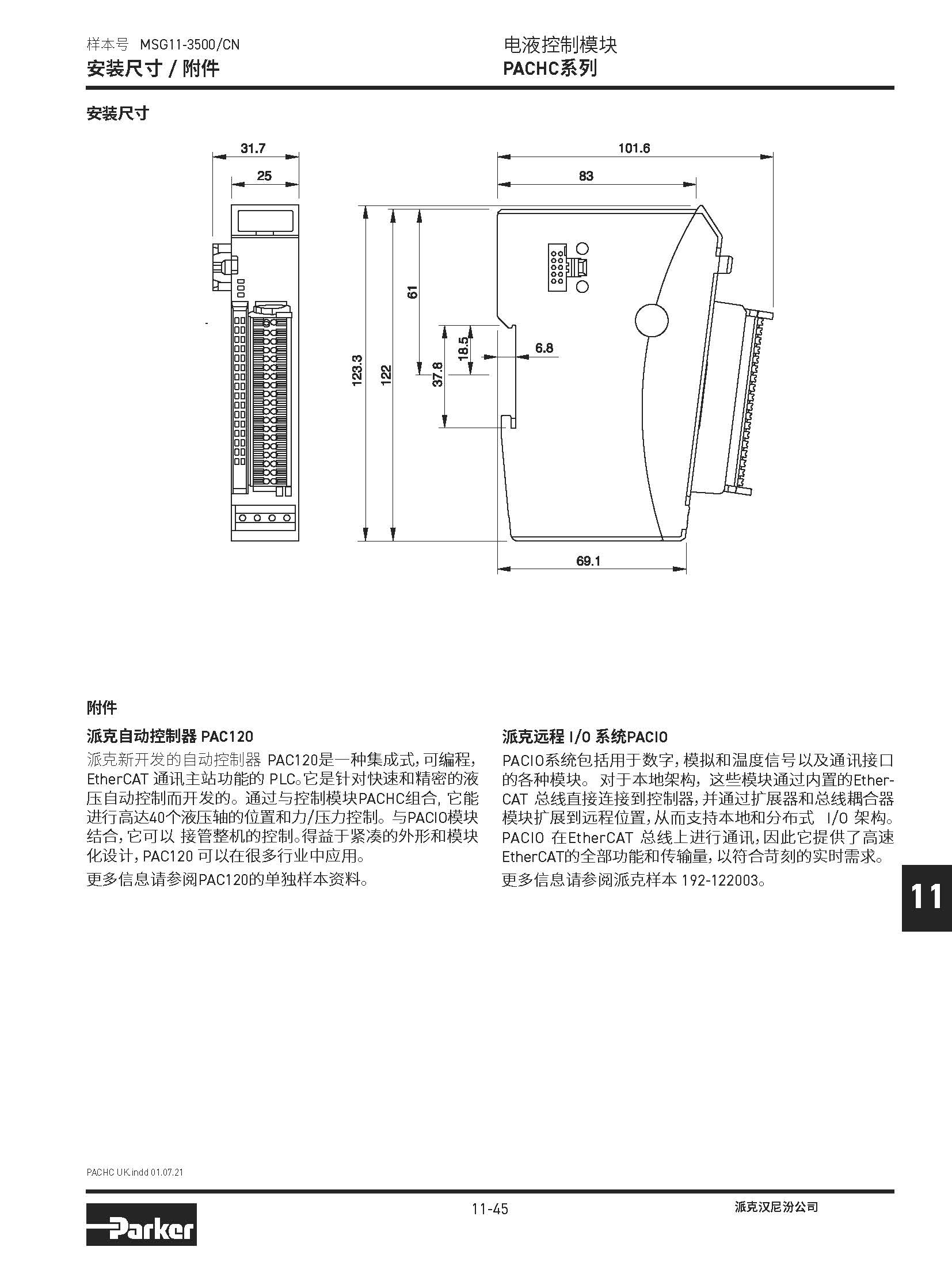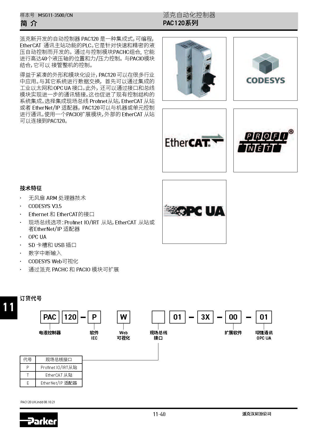 派克新開發(fā)的自動(dòng)控制器 PAC120 是一種集成式,可編程, EtherCAT 通訊主站功能的PLC。