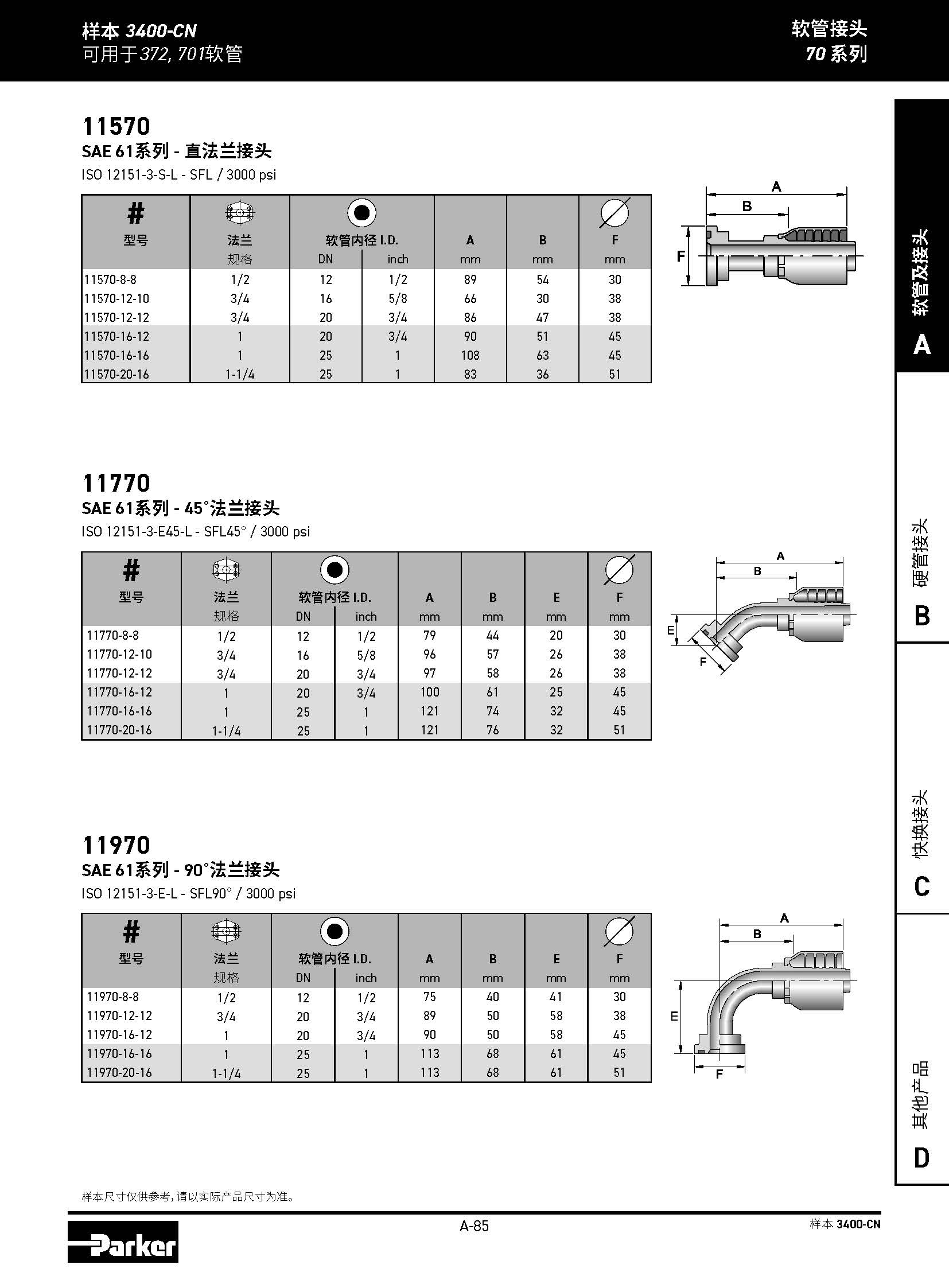 11570 SAE 61系列 - 直法蘭接頭 ISO 12151-3-S-L - SFL / 3000 psi