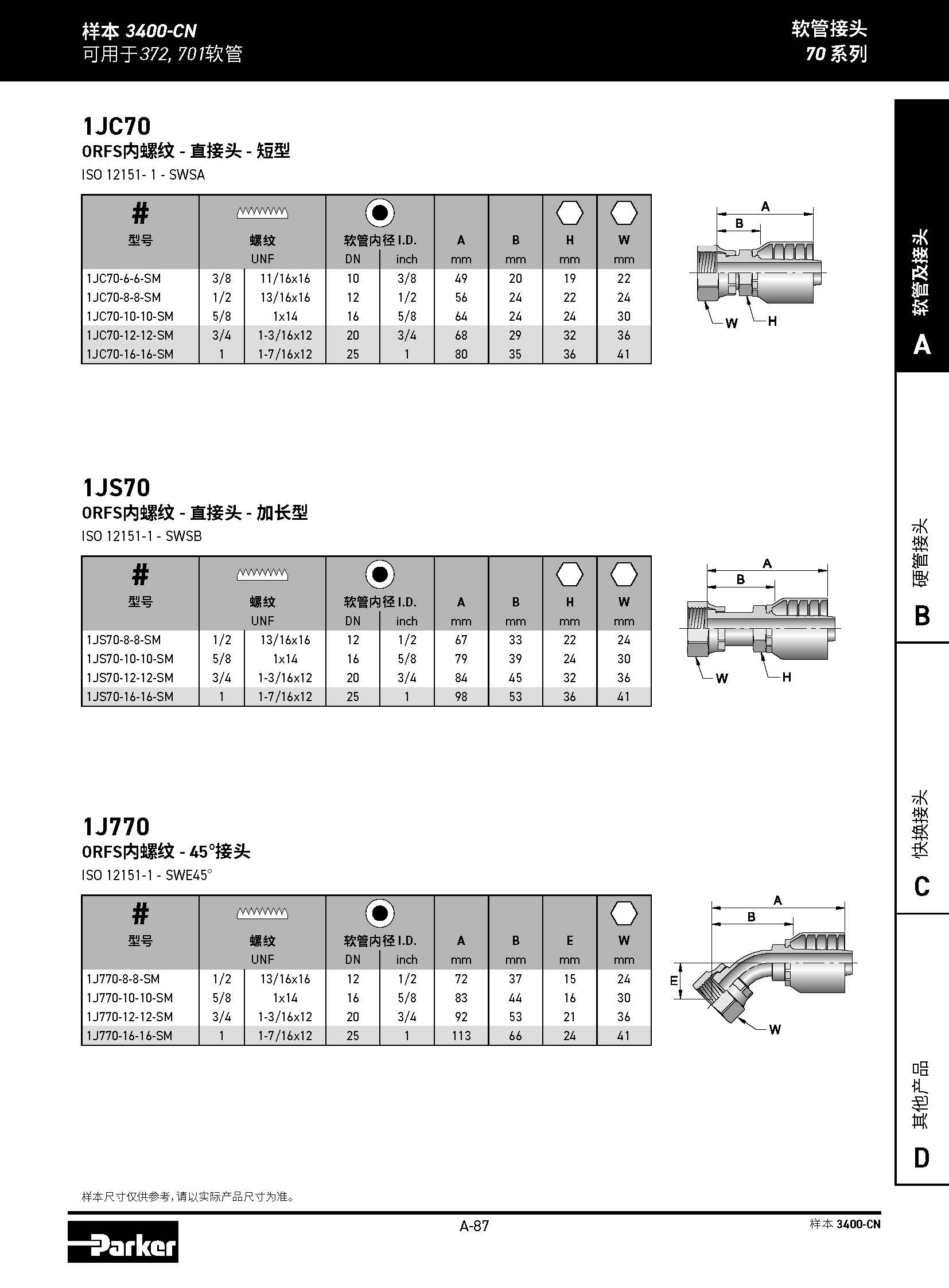 1JC70 ORFS內(nèi)螺紋 - 直接頭 - 短型 ISO 12151- 1 - SWSA