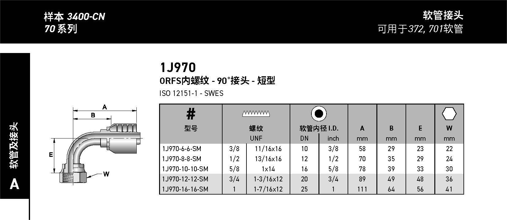 1J970 ORFS內(nèi)螺紋 - 90?接頭 - 短型 ISO 12151-1 - SWES