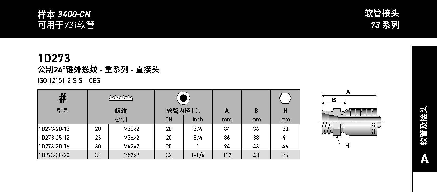 1D273 公制24°錐外螺紋 - 重系列 - 直接頭 ISO 12151-2-S-S – CES