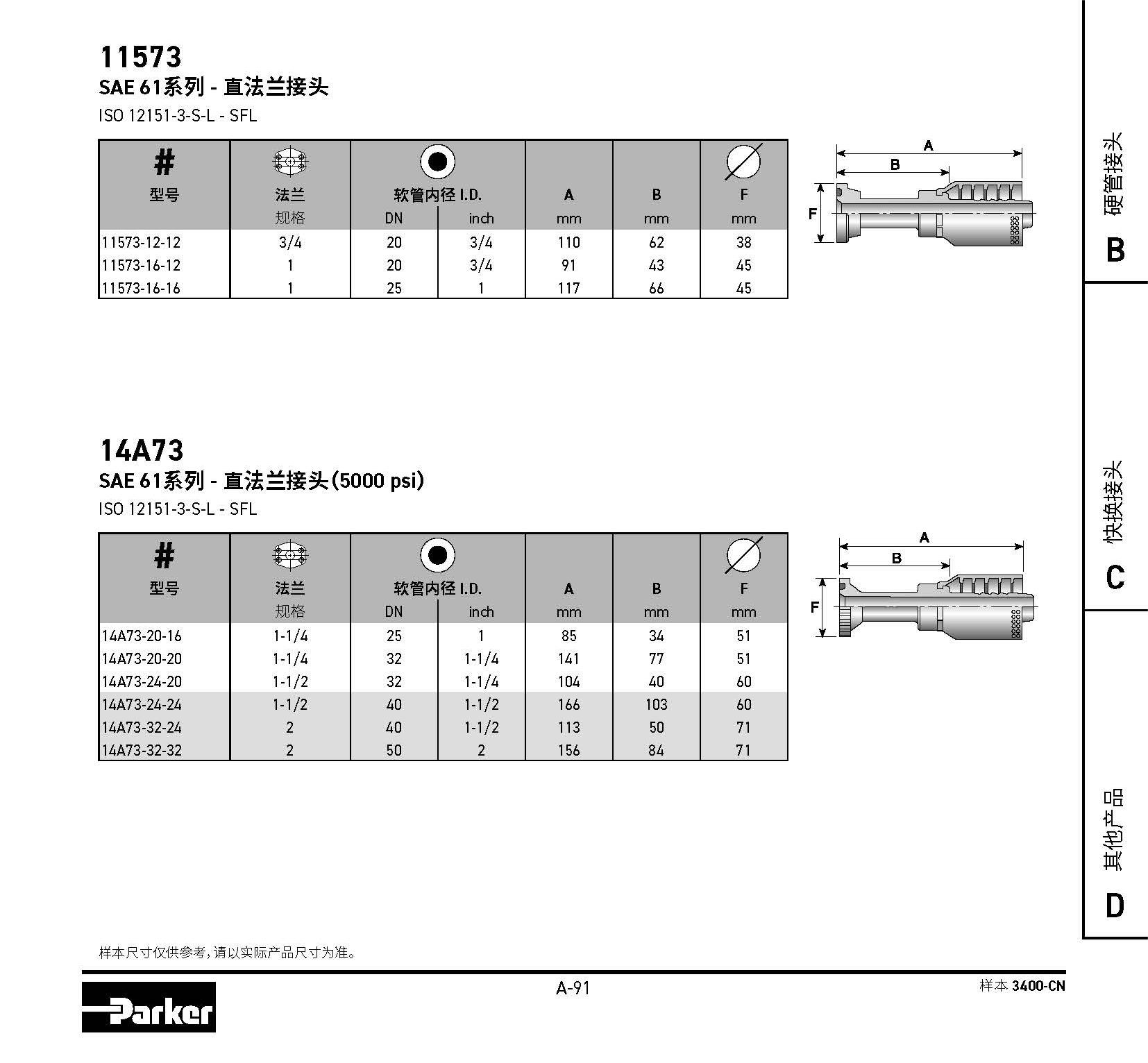 11573 SAE 61系列 - 直法蘭接頭 ISO 12151-3-S-L - SFL