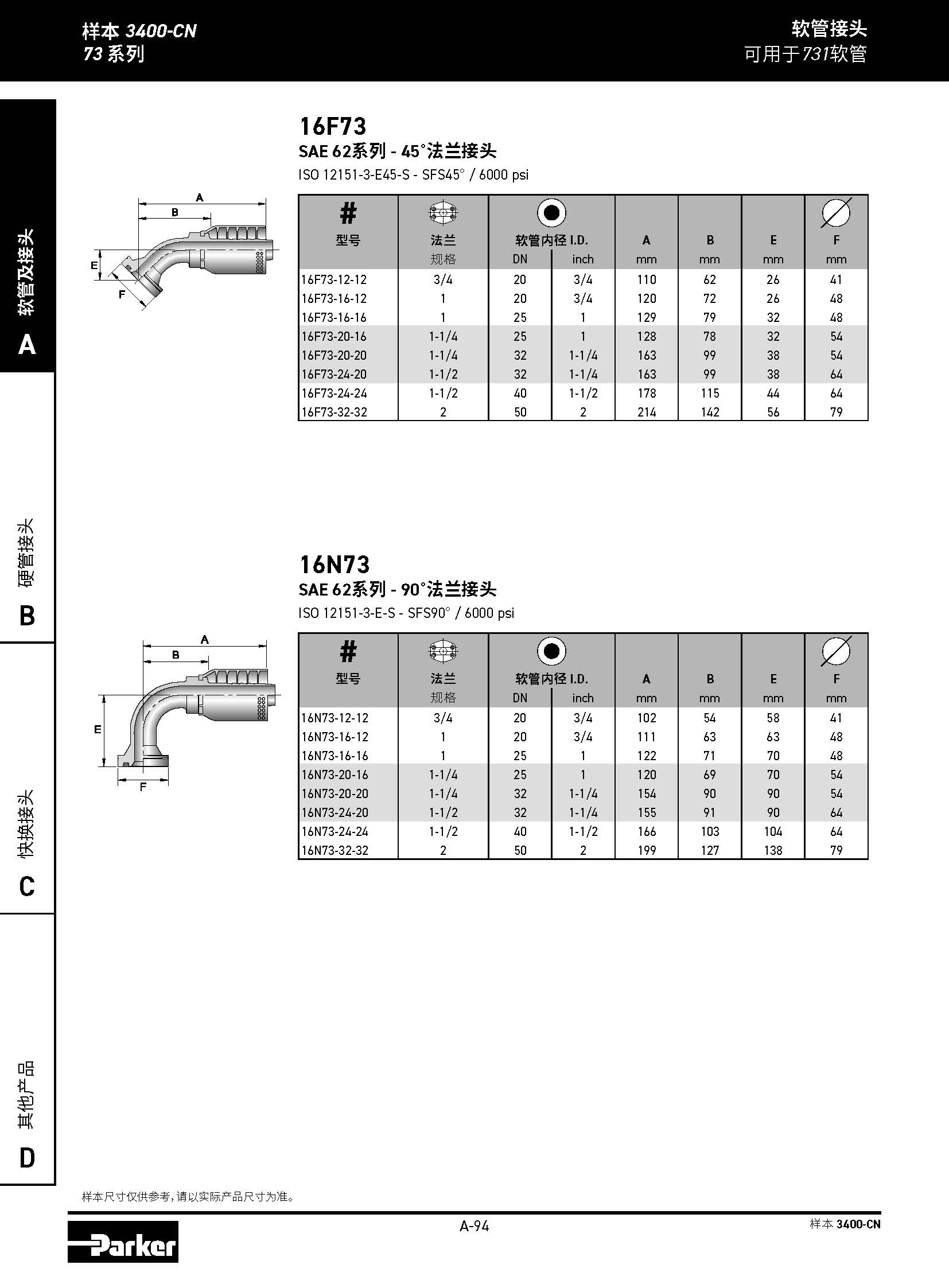 16F73 SAE 62系列 - 45?法蘭接頭 ISO 12151-3-E45-S - SFS45° / 6000 psi