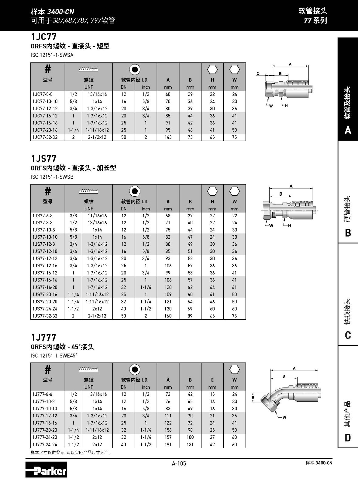 1JC77 ORFS內(nèi)螺紋 - 直接頭 - 短型 ISO 12151-1-SWSA